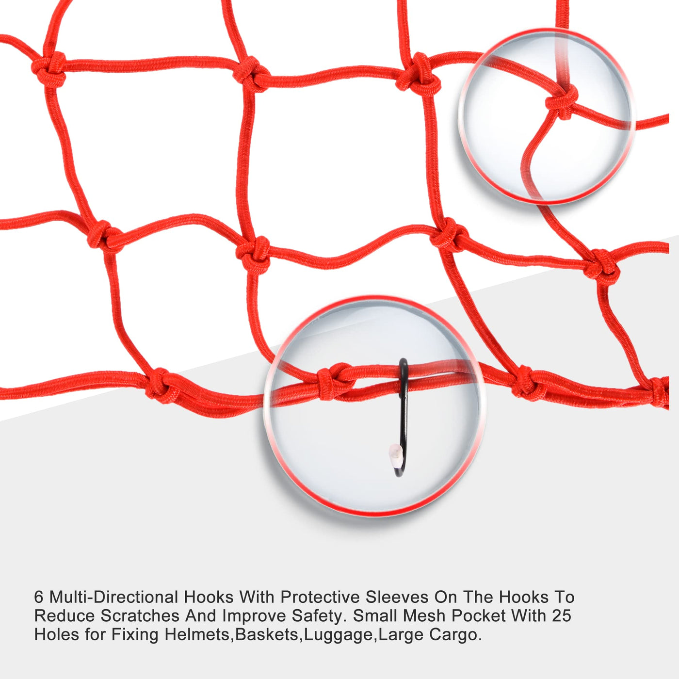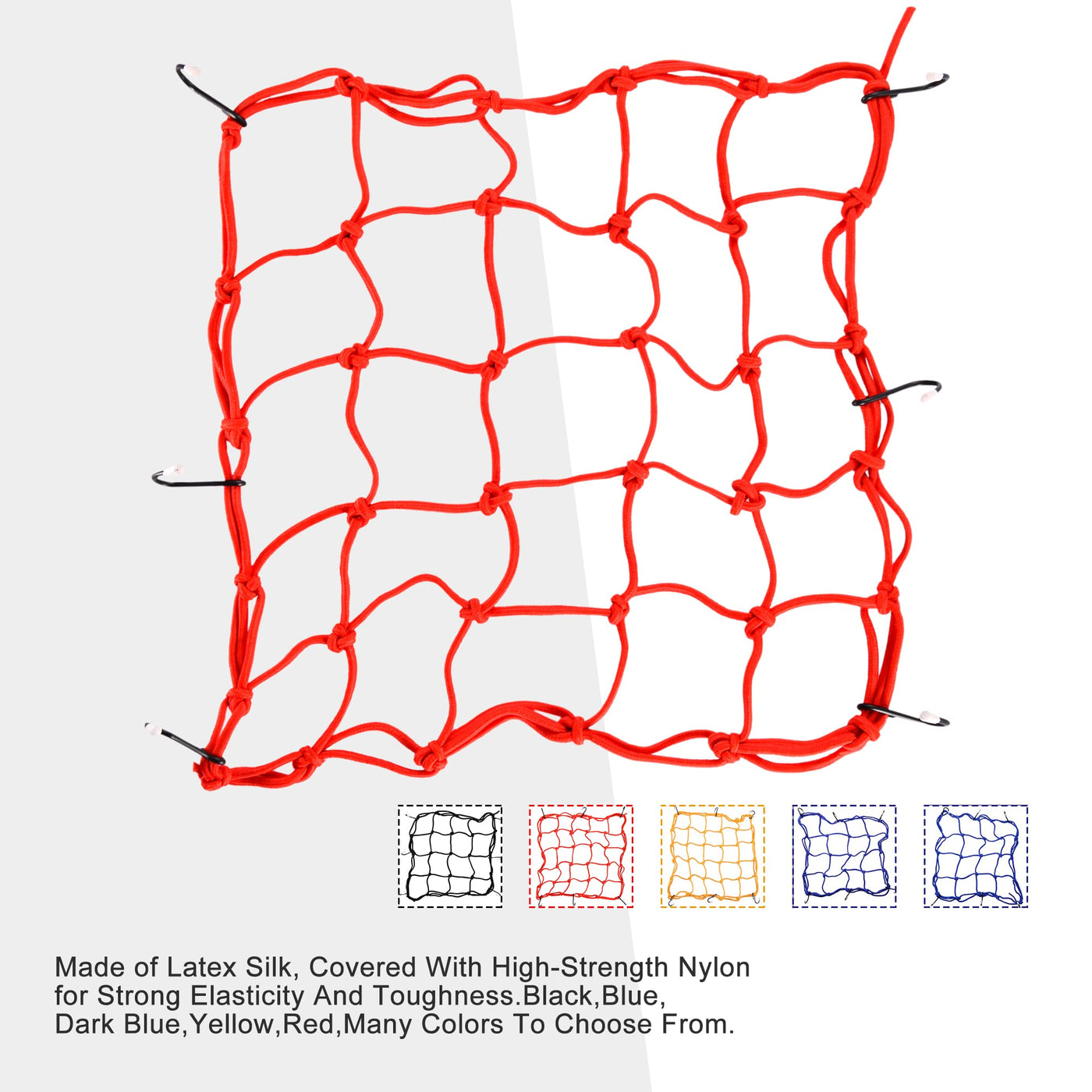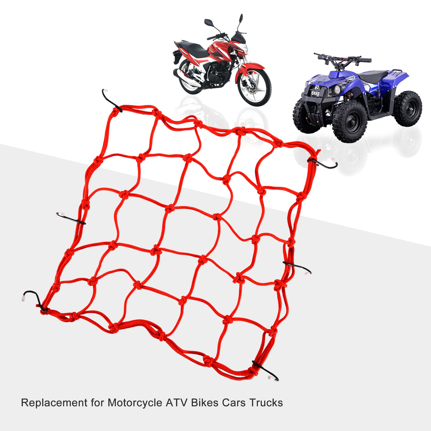 Goofit 15'' X 15'' Elasticated Bungee Luggage Cargo Net With Hooks Hold Down For Motorcycles Motorbike Atvs Bikes Cars Trucks (Red) Package Included: Cargo Net X 1Pcgoofit Keychain X 1Pc