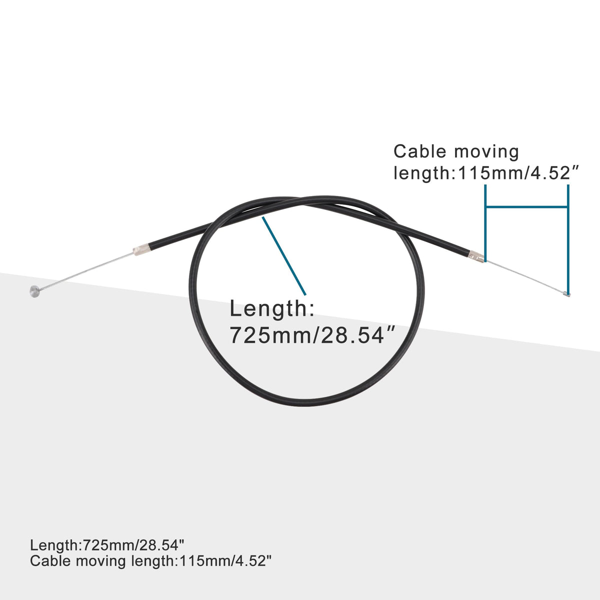 Q: What are the dimensions of the GOOFIT Throttle Cable?A: The GOOFIT Throttle Cable measures 28.54 inches in length (725mm), with a cable moving length of 4.52 inches (115mm). Make sure to check these dimensions to ensure compatibility with your bike model.