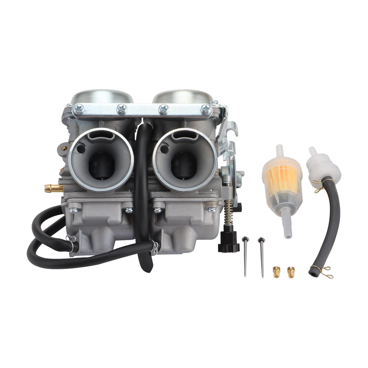 Q: Is the GOOFIT Twin Carburetor durable and resistant to environmental factors?A: Yes, the GOOFIT Twin Carburetor is designed to be waterproof and rust-proof, ensuring durability over time. Its strong build helps it withstand harsh conditions, making it a reliable choice for your vehicle.