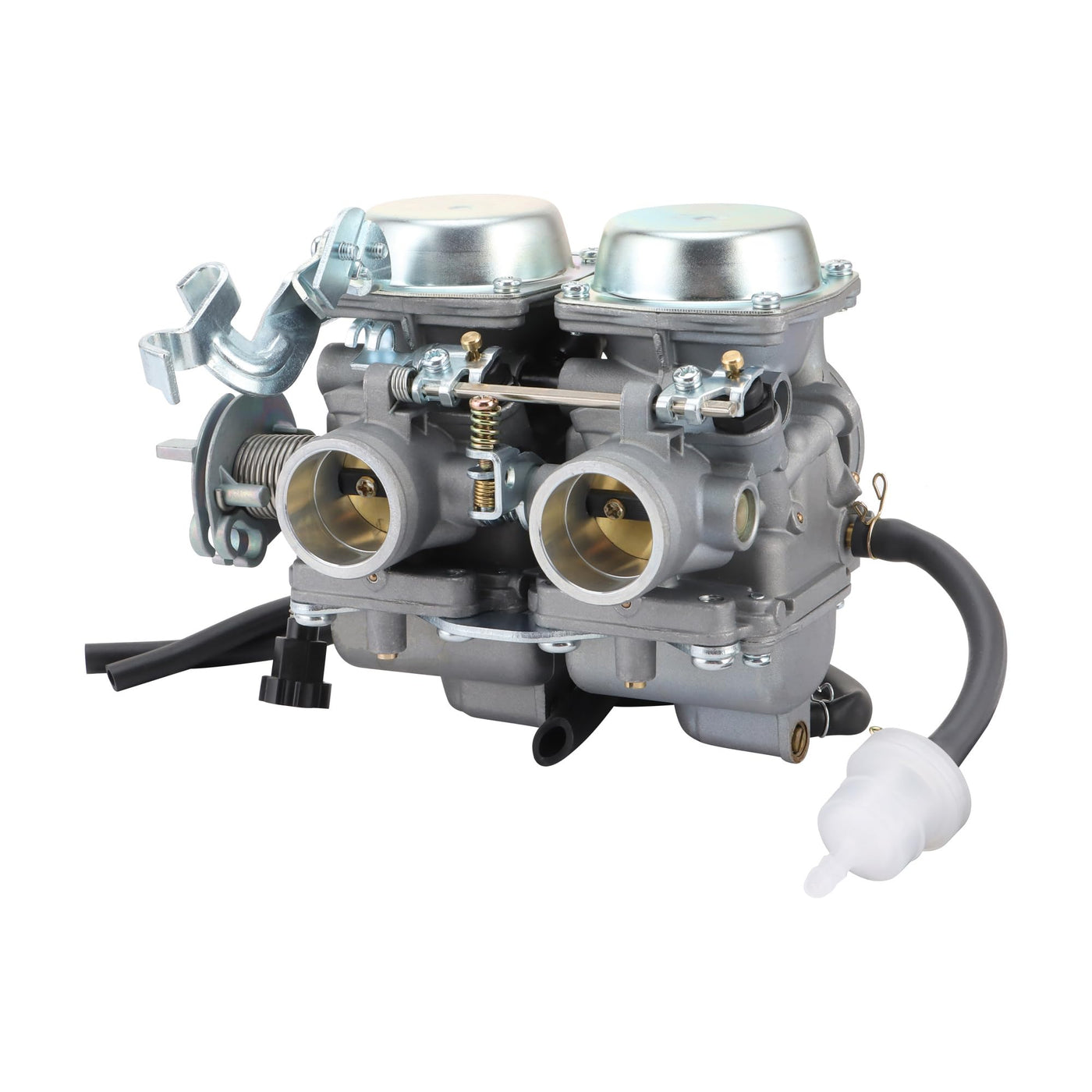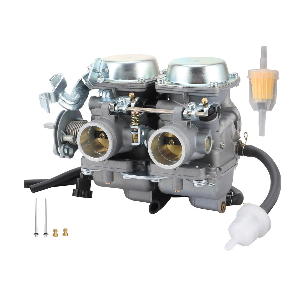 Q: What are the dimensions of the GOOFIT Twin Carburetor?A: The inner diameter of the GOOFIT Twin Carburetor is 26mm, while the manifold diameter is 45mm. It's important to check these measurements against your existing carburetor to ensure a proper fit.