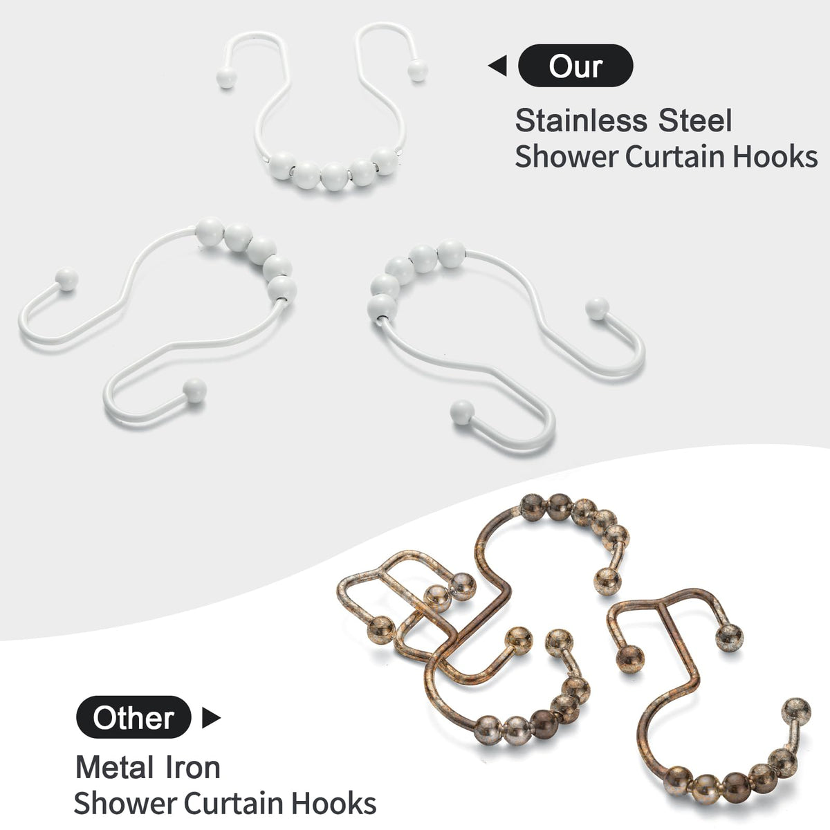 Double Shower Curtain Hooks: The exquisite design features roller balls on both sides, ensuring balanced sliding and preventing the shower curtain from falling off. These hooks can effortlessly hold both heavy curtains and liners.