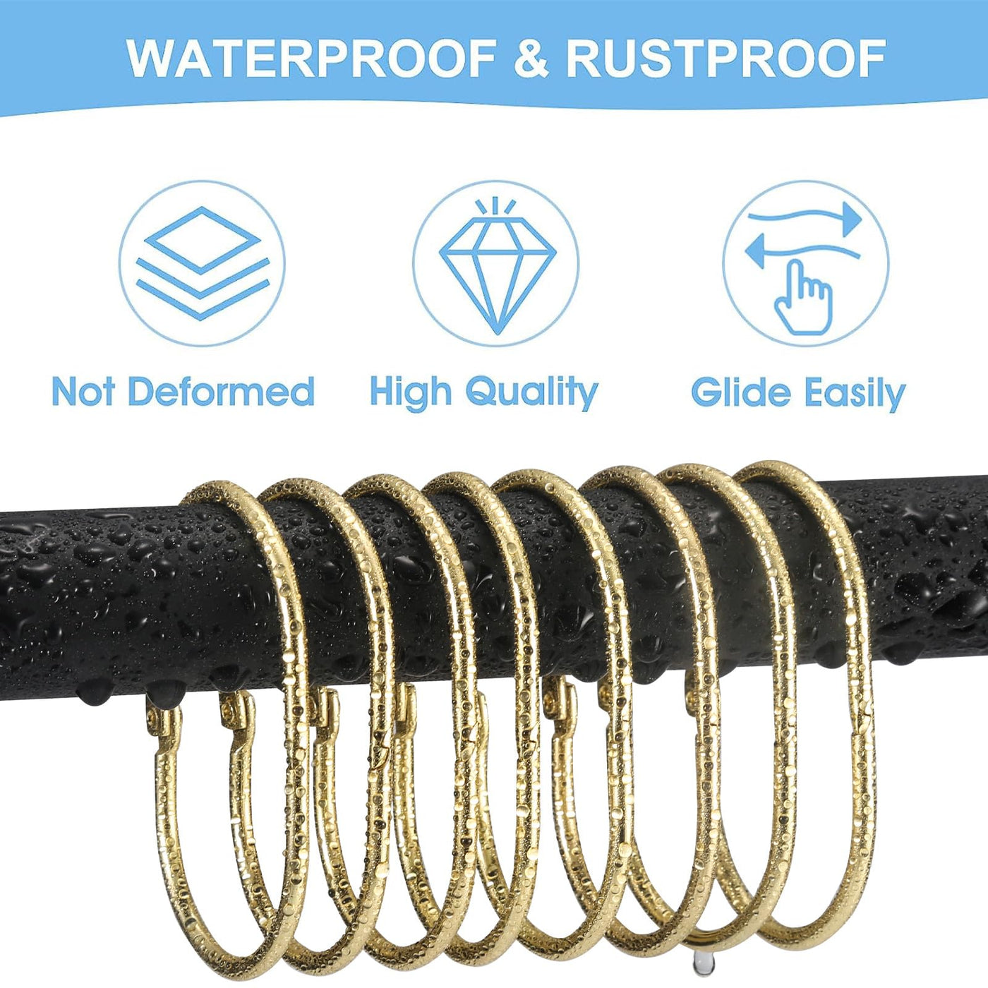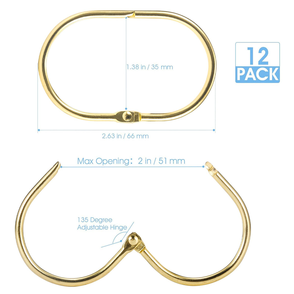 Goowin Shower Curtain Rings, 12 Pcs Shower Curtain Hooks, Oval Snap Shower Rings For Curtain, Metal Gold Shower Curtain Rings Rust Proof, Glide Smoothly Shower Hooks For Shower Curtain Rod (Gold)