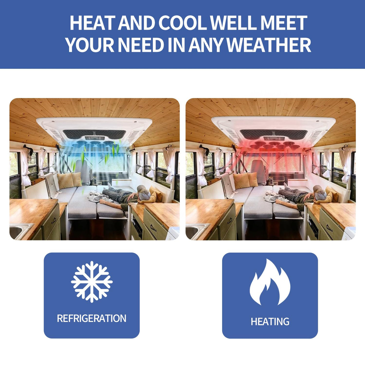 Q: What types of vehicles is this air conditioner compatible with?A: This air conditioner is designed for use in various vehicles, including motorhomes, trailers, caravans, trucks, excavators, and agricultural machines, making it versatile for different applications.