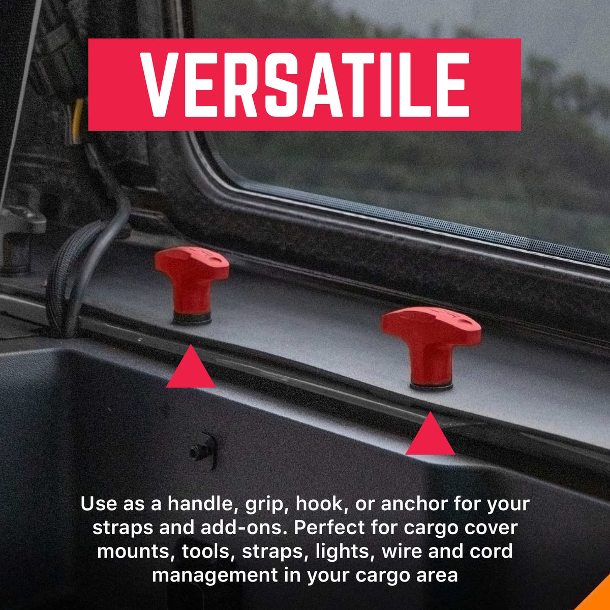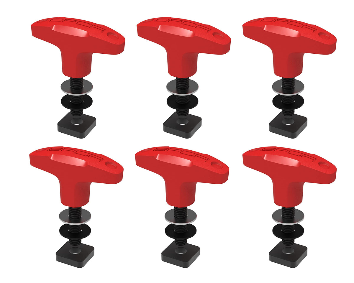 GPCA - GP Anchor Quick-Release Tie Down Anchor/T-Handle M8 25mm Set with Screw Nuts for Fast Jeep Top Removal Lift, Truck Tie Downs, Jeep Wrangler Accessories for 4xe, J & YJ, Patented, Red, 6 Packs