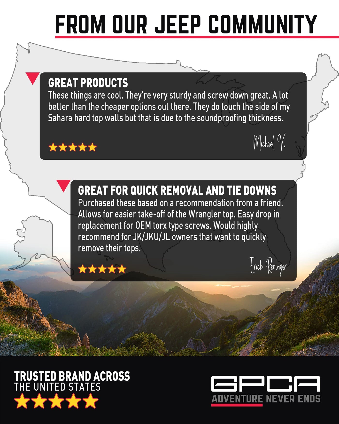 GPCA Quick-Release Tie Down GP Anchor/T-Handle Bolts Set, Tie Down Anchor for Fast Jeep Top Removal Lift, Heavy-Duty Tie Downs for Ford Bronco Models, Patented, Black, 8 Packs