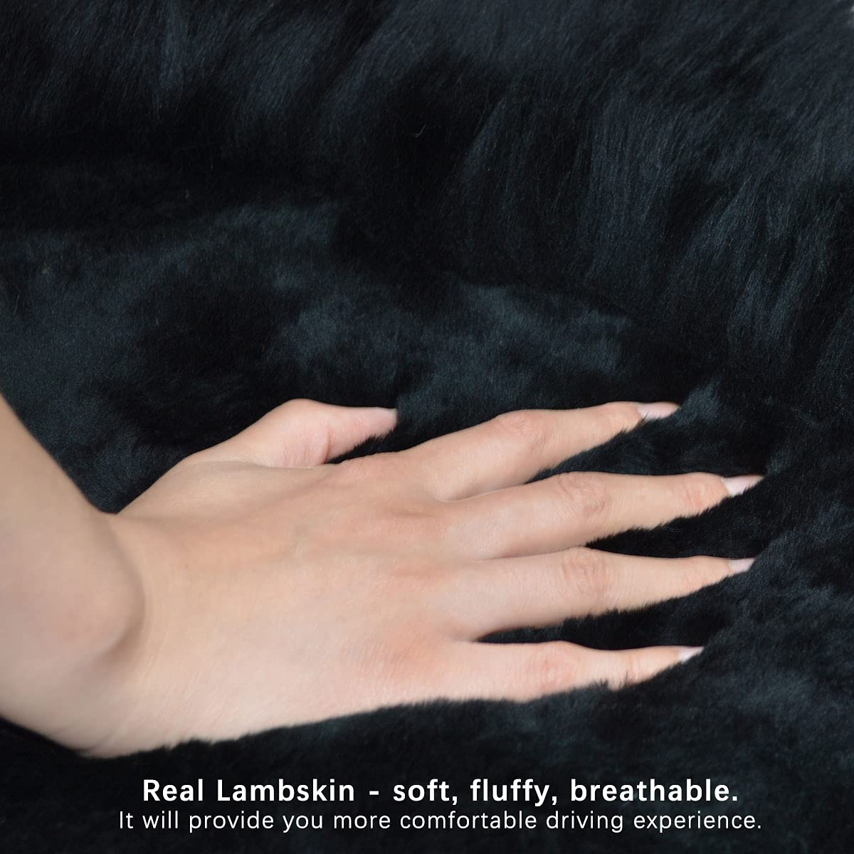 Gracefur Sheepskin Car Seat Cover Genuine Wool Seat Cover Fluffy Fur Front Seat Covers Fits Cars, Trucks, SUV, or Van (Black)