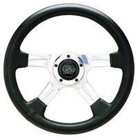 The Elite Gt Steering Wheel Features Highly Polished Mirror Finish Aluminum Spokes. The Wheel Is Highlighted By A Machined Billet Aluminum Trim Ring. These Models Feature A Hand-Stitched Leather-Grained Vinyl Grip. A Grant Installation Kit Is Necessary To Mount This Wheel To A Vehicle. This Wheel Will Work With Grant Standard 3000 Or 4000 Series, Billet 5000 Series, Or Euro 6000 Series Installation Kits.