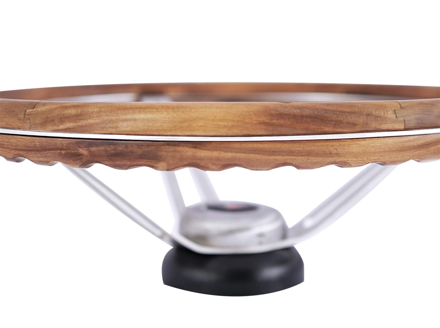 Q: What materials are used in the construction of this steering wheel?A: This steering wheel features a genuine hardwood walnut finish grip for a classic look and feel, along with brushed stainless steel spokes that ensure durability and a stylish appearance.