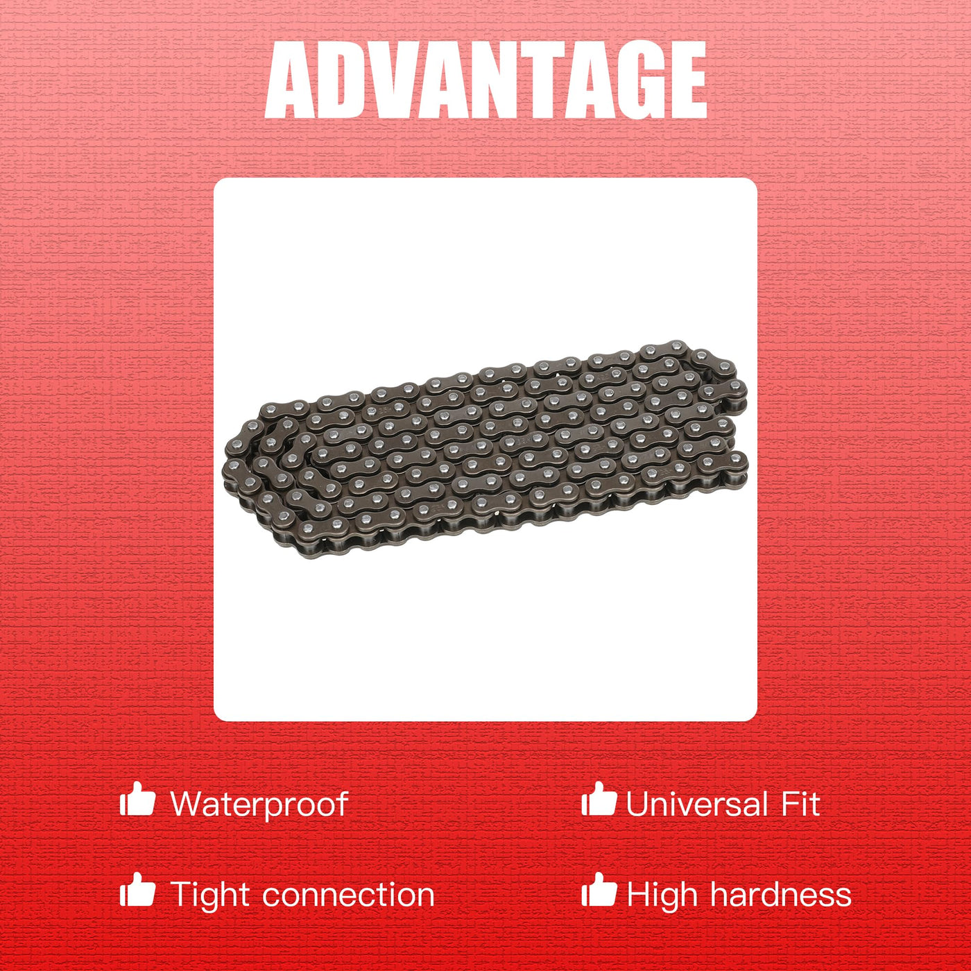 #25 Drive Chain 132 Link fit for Razor MX500 MX650 SX350 SX500 SX650 dirt rocket dirt quad electric motocross bike XRF50 mini moto motorcycle Feature: 1.Long-term use without inspection and adjustment will cause the chain to become loose,so need to check and replace your chain regularly to ensure driving safety. 2.We have complete accessories in each package. Fitment: 1.Razor MX500 MX650 SX350 SX500 SX650 Dirt Rocket. 2. XRF50 mini moto motorcycle Package Included: 1 x #25 chain 132 link 8 x master link -Please check as much as possible to the item picture, model and size carefully before purchasing.