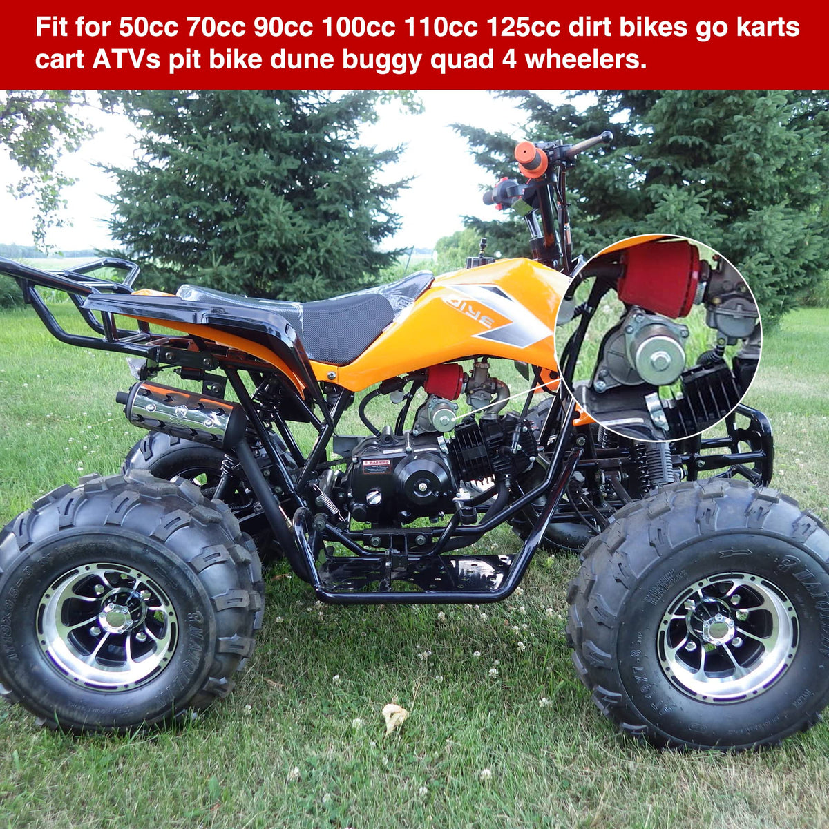 GREHUA 3 Bolt Starter Motor Starter Solenoid Relay Spark Plug for 50cc 70 cc 90cc 100 cc 110cc 125 cc Dirt Bikes Go Karts Cart ATVs Pit Bike Dune Buggy Quad 4 Wheelers. Feature: 1. 3 Bolt Starter:Made of premium plastic and metal material, high temperature resistant, not easy to aging and abrasion resistant,solidly and durably, good working. 2. Starter Solenoid Relay:High cranking power,reduce startup switch electric current. 3.Spark plug: Triple electrode head Spark plug,easy to install and durable.Replace your old spark plugs and you will get more out of your fuel. Fitment: Fit for most Chinese 50cc 70 cc 90cc 100 cc 110cc 125 Apollo SSR Roketa Jonway SunL Venom,Kazuma,Go Kart Cart ATV Dirt Pit Bike Dune Buggy Sand Rail Quad 4 Wheelers Coleman AT125UT ATV Taotao DB27 dirt bike,ATA 125-D fourwheeler,ATA-110B ATV, T FORCE 125ATV,GK110 Go Kart Baja 90cc ATV Coolster 110cc 125cc ATV Vitacci 125cc ATV Apollo blazer 125cc ATV Panther 110cc Kids Quad Roketa 125cc go kart Item Condition : New Color : Silver and Black Package Included: 3 Bolt Starter Motor with Line x 1 Starter Solenoid Relay x 1 Spark plug x 1