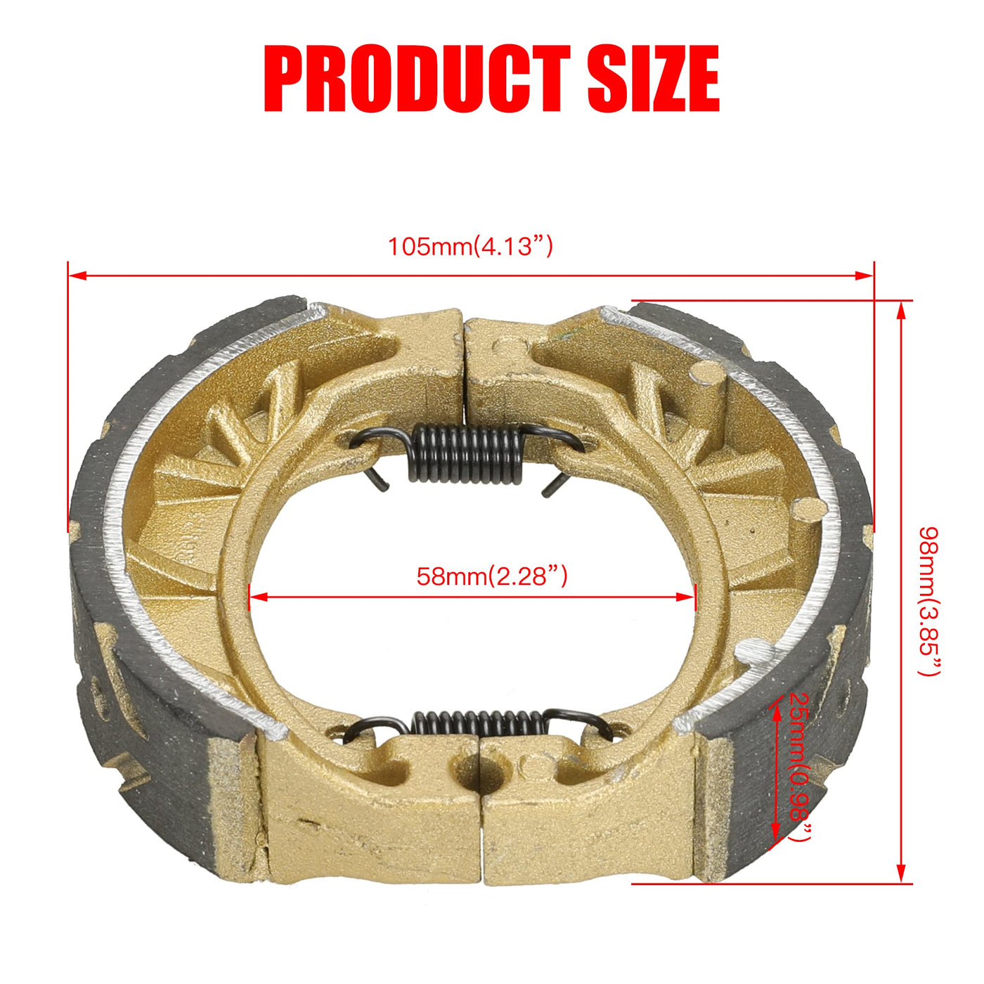 Grehua Cg125 105Mm Drum Brake Shoes Pads Chain Tensioner Adjuster Kit Fit For Mini Bike Parts Powered By 212Cc 196Cc 6.5Hp 5.5Hp Powersports Colema* Ct200U Ct200U-Ex Ct200U Trail 200 Bt200X Baja Heat Warrior Mb165 Mb200 Massimo Mb200 Motorsports Hond* Crf70. Feature: 1.High Quality Material And Easy To Install—The Brake Pads Made Of High Quality Metal Material,Light And High Pressure Resistance. It Has High Slip Resistance, Higher Abrasion Resistance, Rust Resistance And Durability. And It Can Perfectly Replace The Old Brake Pad. It Is Very Easy To Install And Works Well. 2.Sinple And Compact Design—Simple And Compact Design Can Help Smooth Out The Stopping And Cut Down On Noise. Brake Shoe Pad With High Elastic Spring, Frequent Brake Deformation Is Not Easy.The Surface Is Composed Of Composite Wear-Resistant Material Friction Skin, Low Noise.Long Service Life, And Can Ensure Reliable Performance.Brake Pads Have High Friction Coefficient, Low Noise, Wear Resistance, No Damage To The Double Disc, And Stable Braking. 3.We Have Complete Accessories In Each Package. Fitment: 212Cc 196Cc 6.5Hp Mini Bike Baja Mini Bike Mb165 & Mb200 (Baja Heat, Mini Baja, Baja) Hensim Mini Bike Mb165 & Mb200 (Heat, Mini Baja, Warrior) Coleman Ct200U Ct200U-Ex Bt200X Ct200U Trail 200 Ct200U-Exr Massimo Mb200 Trailmaster Mb200 Honda Crf70 Brand:Grehua Item Condition:New Material:Metal Package Included: 1 X Brake Shoe 2 X Chain Adjuster Tensioner Kits Note: —Please Check As Much As Possible To The Item Picture, Model And Size Carefully Before Purchasing.