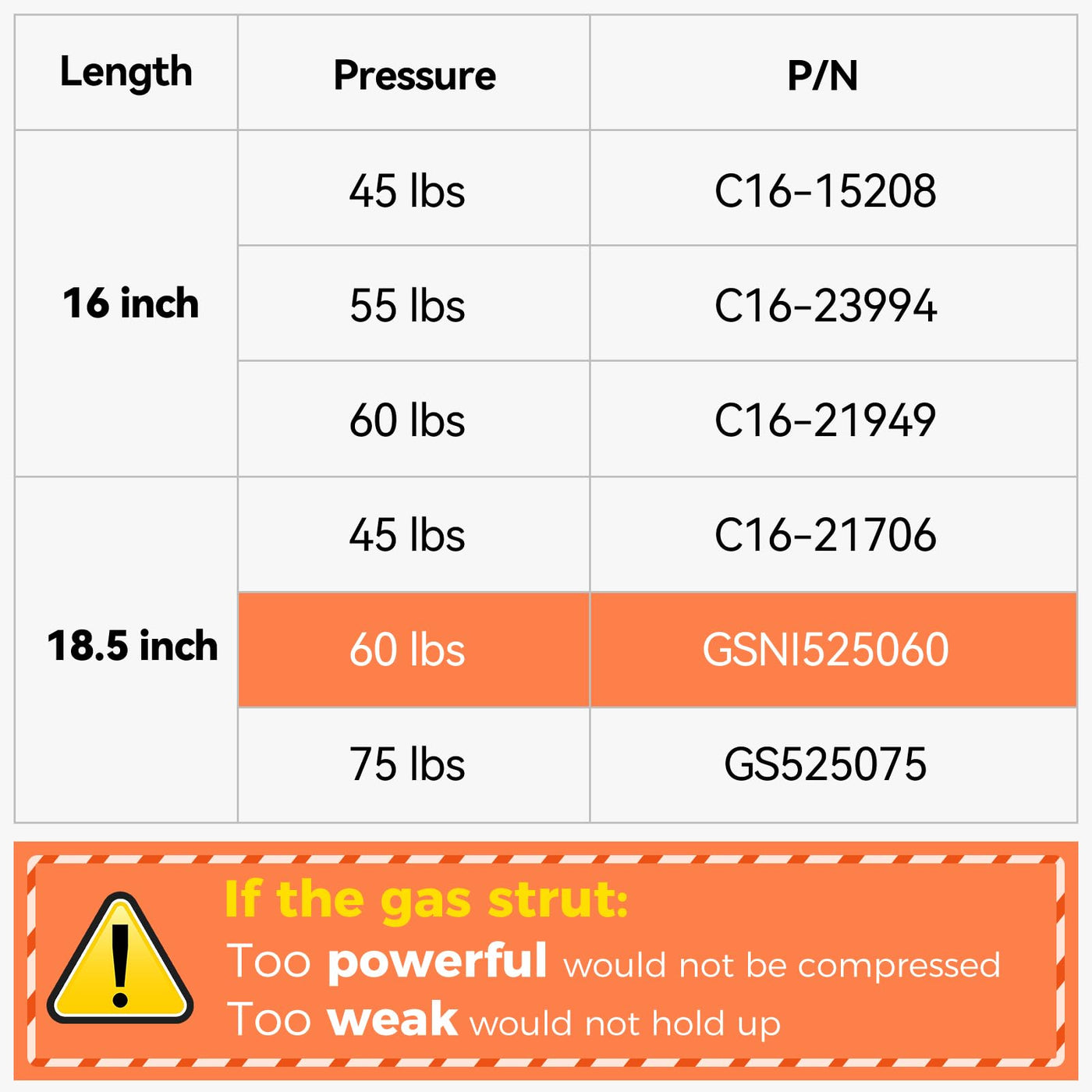 Gs5250-60 19Inch 18.5 Inch 60 Lbs Gas Strut Shocks Lift For A.R.E Leer Camper Shell Pickup Truck Cap Topper Canopy Glass Door Ha