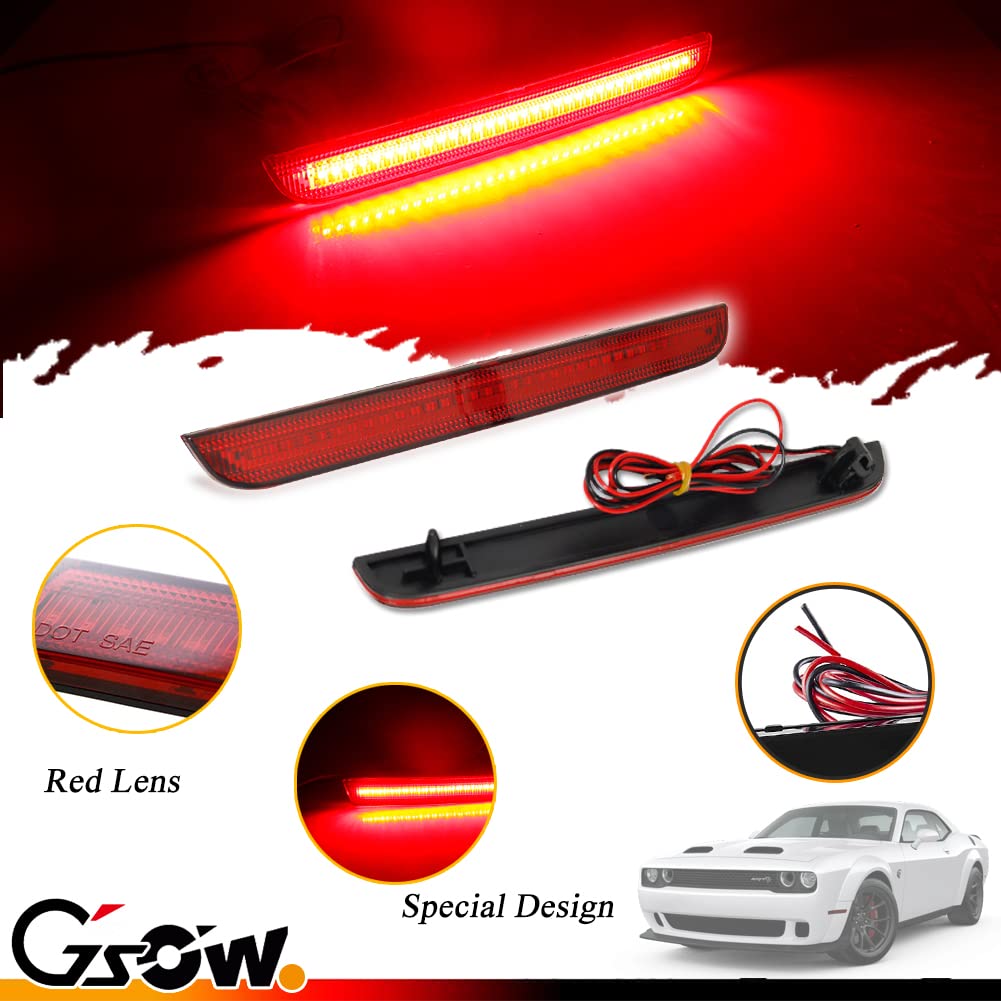 GSOWO 2 PCS LED Rear Bumper Reflector Lights for Dodge Challenger 2015-2022, Red Lens Red Tail Lamps, 80-SMD LED Chips Reflector Light Kit, Car Accessory - Red Lens