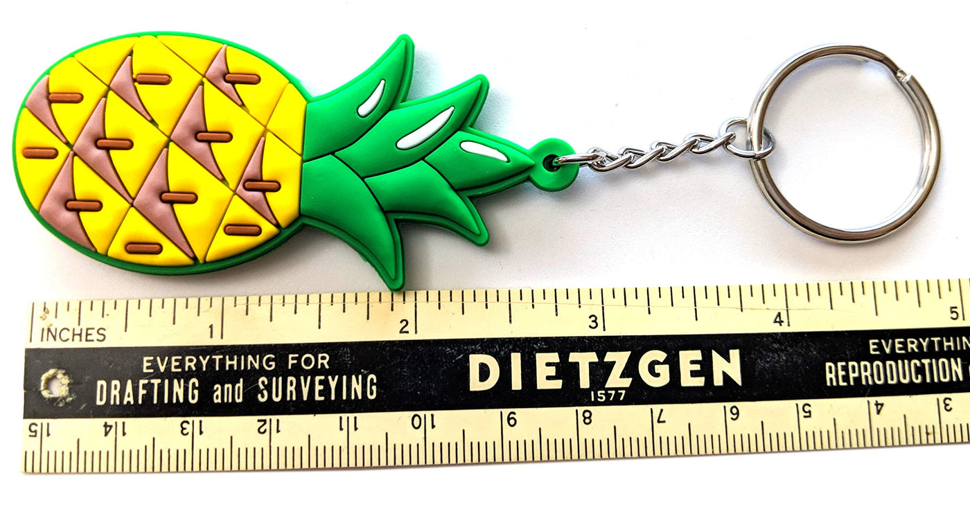 Introducing our Pineapple Rubber Keychain, a delightful accessory designed to infuse your day with a burst of tropical cheer. This keychain features a vibrant pineapple design that embodies the essence of summer and sunny vibes. Crafted from durable rubber material, it's built to endure daily adventures, ensuring it remains a colorful and dependable addition to your keyring. Its versatility shines through as it effortlessly attaches to your keys, backpack, or purse, allowing you to carry a slice of tropical paradise wherever you go. Whether you're a fan of summer, tropical themes, or simply appreciate the whimsical charm of pineapples, this keychain is the perfect way to showcase your lighthearted and fun-loving spirit. Brighten up your day and spread positivity with our cheerful Pineapple Rubber Keychain - a must-have for those who embrace the sunny side of life.