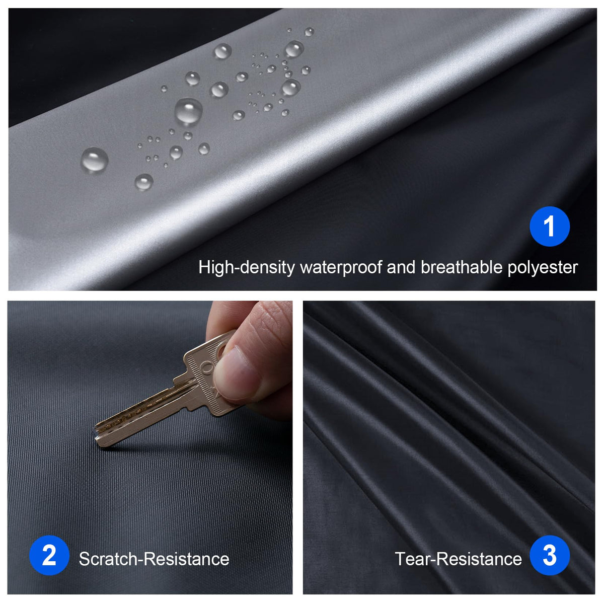 ?Premium Material? GUNHYI full exterior cover adopt newest secure materials, more wear-resistant and tear resistant.Can withstand 1800mm water pressure, so that the car cover have better water resistance. PA coating is good at sunproof, anti-Uv, keeps cool in hot day, suitable for all season. ?All-weather protection? GUNHYI weatherproof car cover provide overall protection for your vehicle from sun, uv, dust, snow, fallen leaves, industrial pollution, bird droppings, pollen, animals, acid rain and extreme weather. Perfect for outdoor and indoor use. ?Unique design?1. 4pcs reflective stripes remind other people in the night, avoid accident in dark environment 2. The elastic hem at the bottom makes the car cover fit the car better 3. Windproof straps can prevent the cover from being blown away by the heavy wind 4. Double stitch technology, it make the fabric stitched tighter, more durable than most similar covers. ?Choose the Right Model? Suitable for Sedan, Length 209 to 218 inch. (Not for Hatchback SUV). For example Fit Sedan--Chevrolet Caprice, Buick Roadmaster, Ford Galaxie/Crown Victoria, Lincoln Continental, Dodge Challenger, Cadillac Deville/Sixty Special, Bentley Azure/Arnage/Brooklands, Rolls-Royce Ghost etc. ?What You Get? 1pcs GUNHYI car cover, 1pcs storage bag and 12 months of product support. We stand behind our products and service, if you have any problems, please contact us anytime, we will provide you with a satisfactory solution!