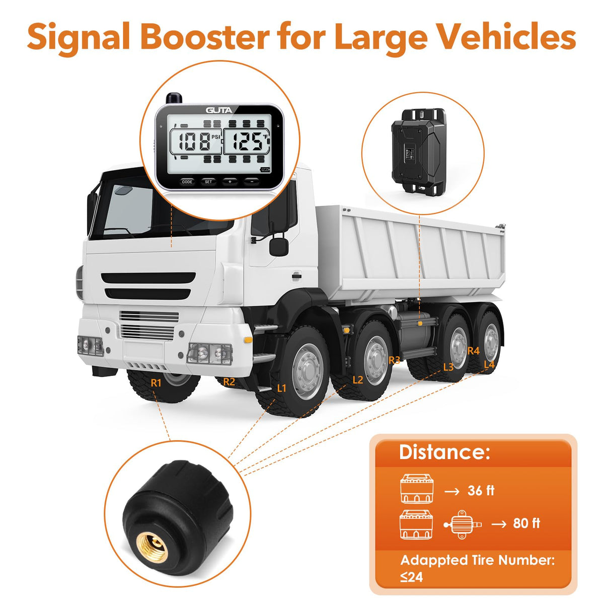Guta Rv Tire Pressure Monitoring System, Rv Tpms, 8 Sensors, 7 Alarm Modes, 14 Days Battery Life, 80Ft Sensing Distance, Large S
