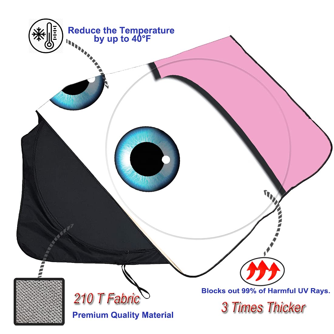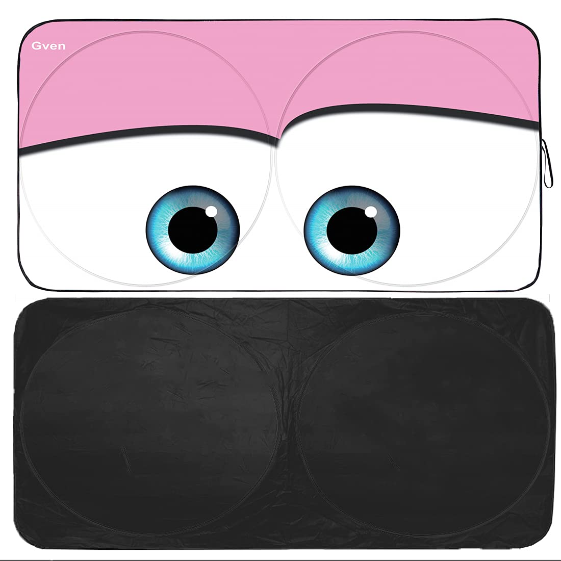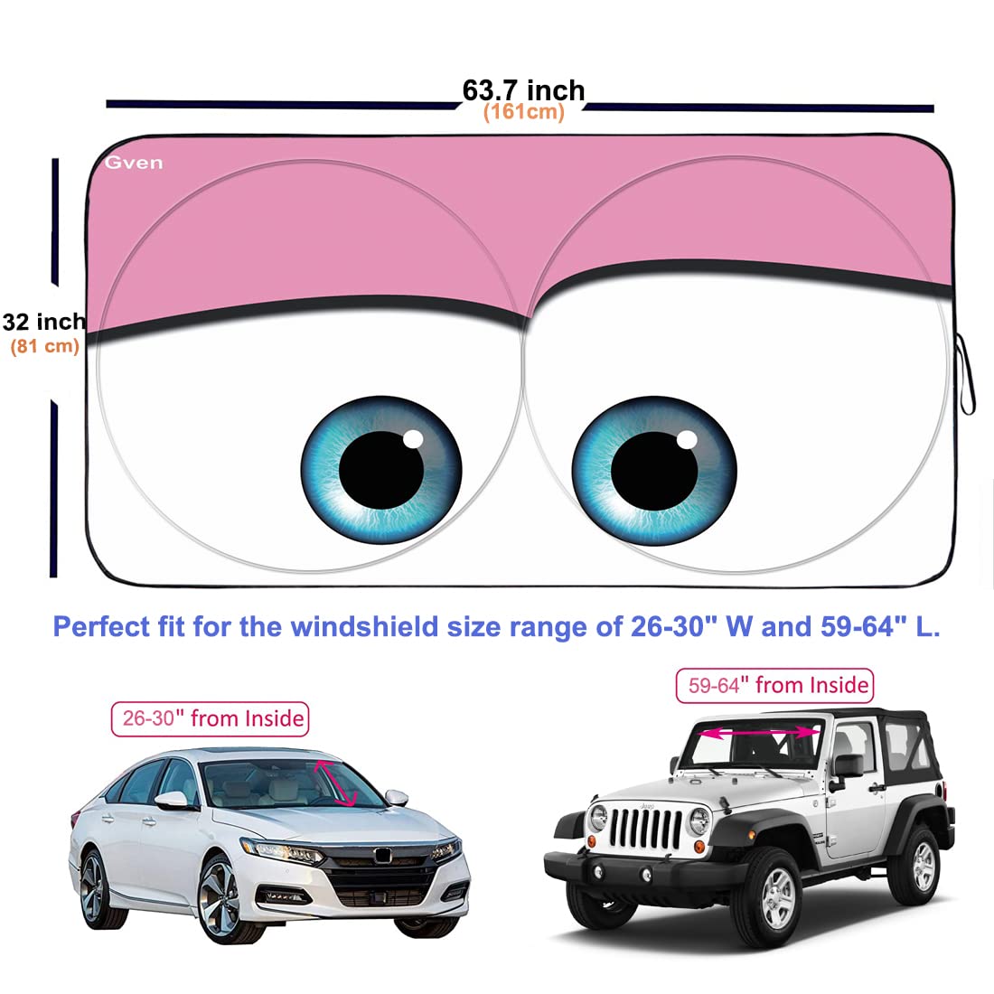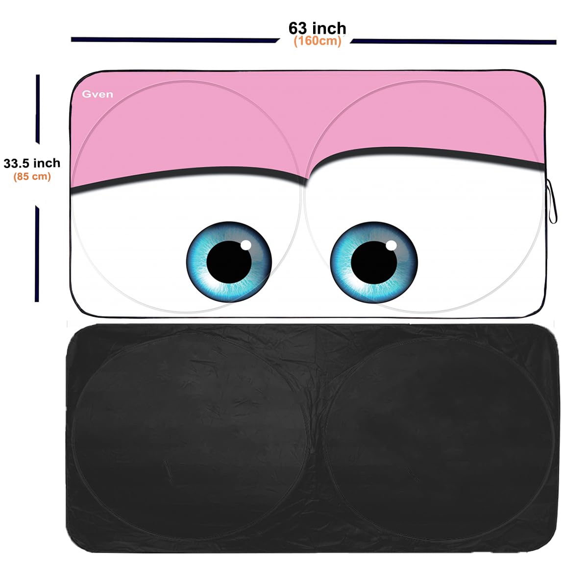 Gven Windshield Shade, Car Sun Shade For Front Windshield Funny Car Eyes Sunshades Sun Visor Protector Blocks Uv Rays Foldable 210T Keep Your Vehicle Cool (Eyes-Pink, Large)