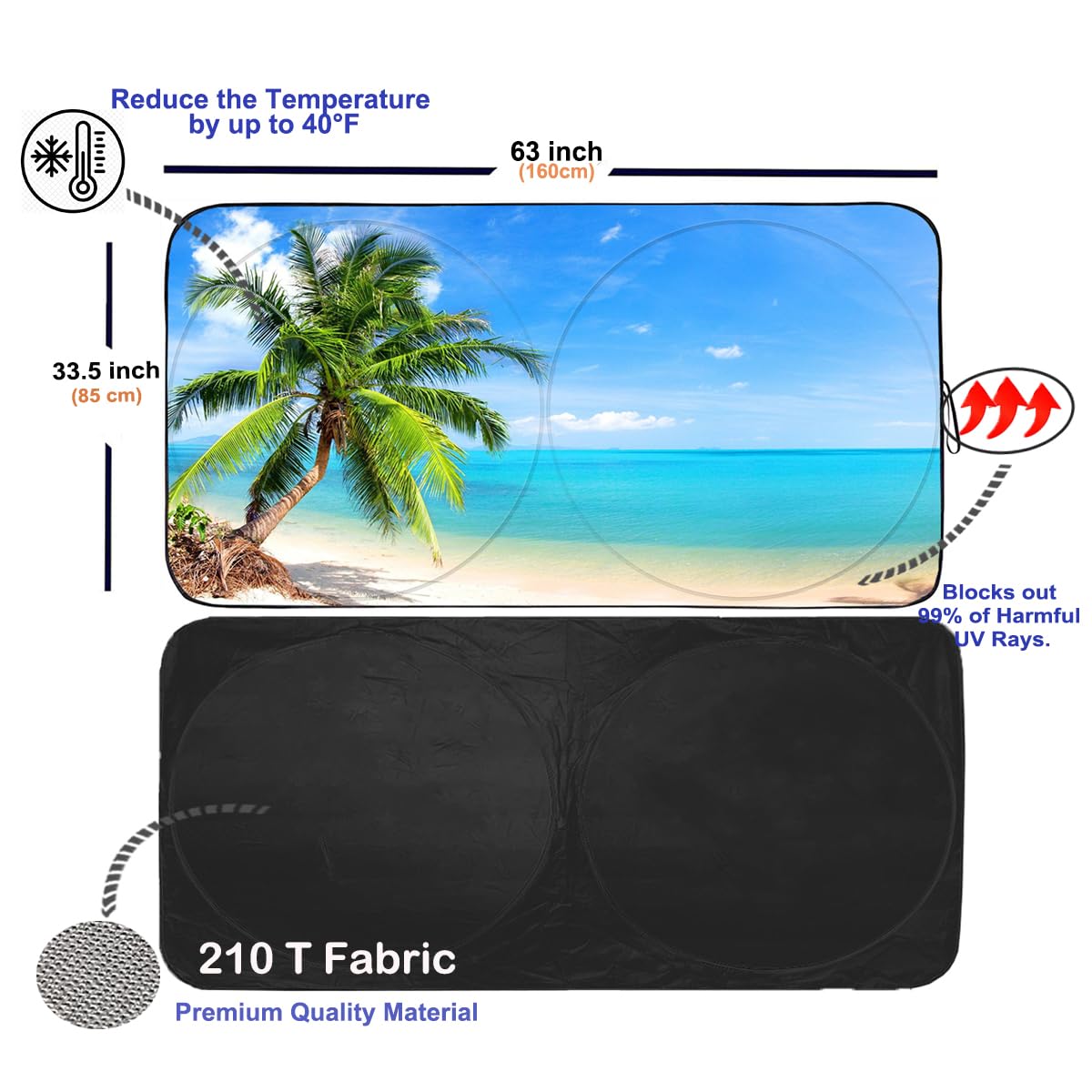 Gven Car Sun Shade Windshield, Hawaiian Style Car Sun Shade Palm Tree Uv Protection Heat Reflective Car Sunshade Windshield Summer Beach Trip Car Accessories (Palm Tree, L)