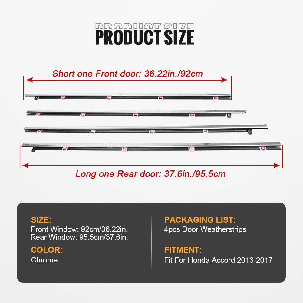 GZYF 4PCS Auto Window Moulding Weather Strip Seal Belt for Honda Accord 2013 2014 2015 2016 2017