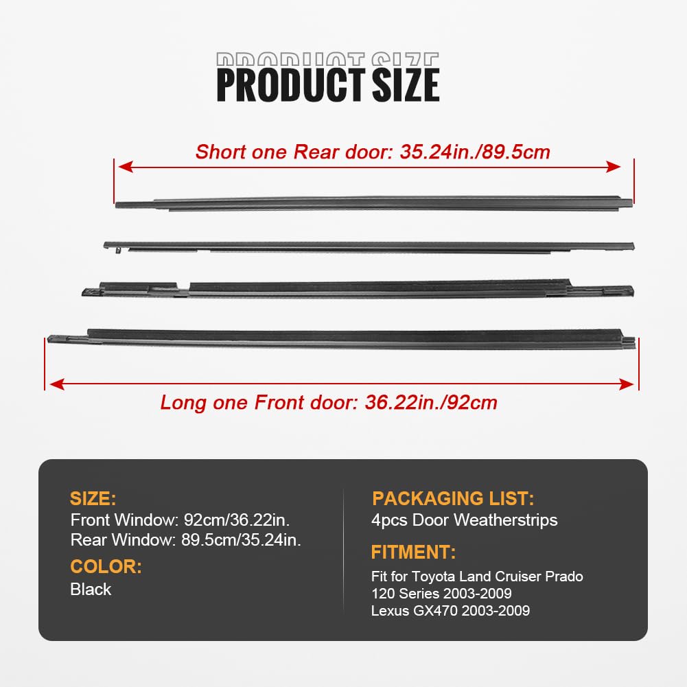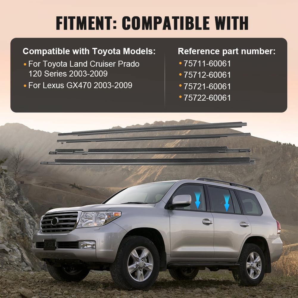 GZYF 4PCS Weatherstrip Window Moulding Trim Seal Belt Weather Stripping for Toyota Land Cruiser Prado 120 Series 2003-2009 / for