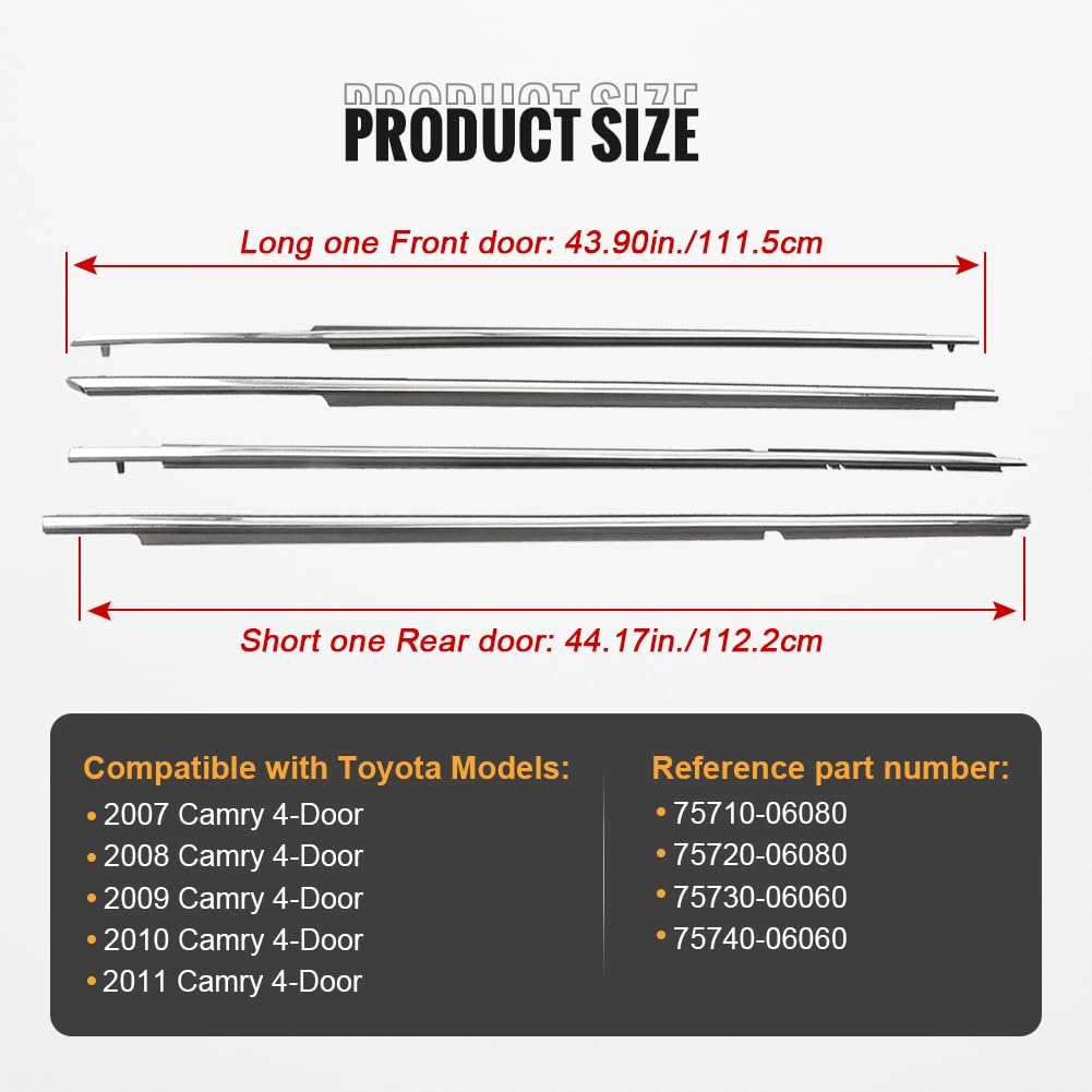GZYF 4PCS Weatherstrips,Window Moulding Trim Seal Belt Weather Stripping for Toyota Camry 2007 2008 2009 2010 2011,Chrome