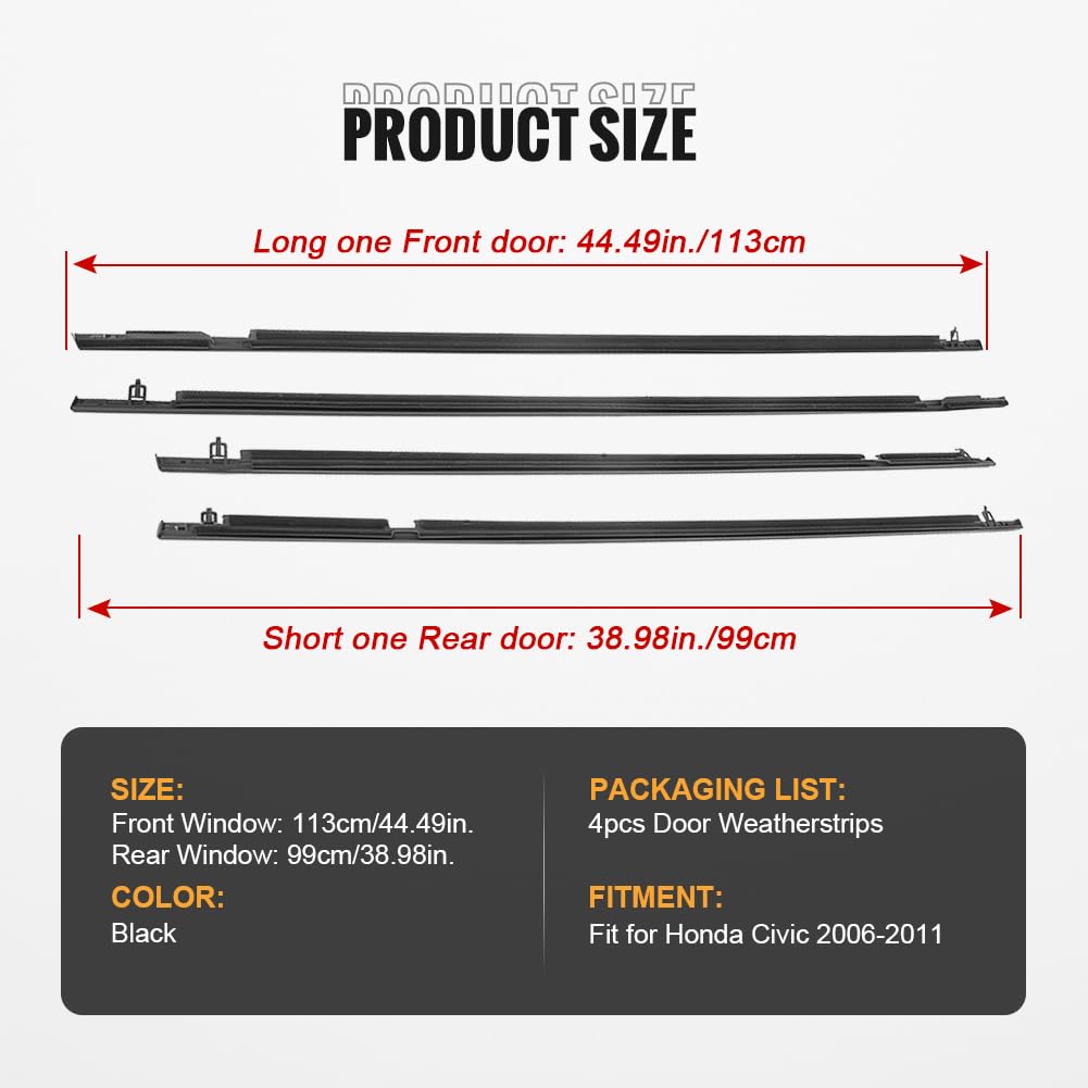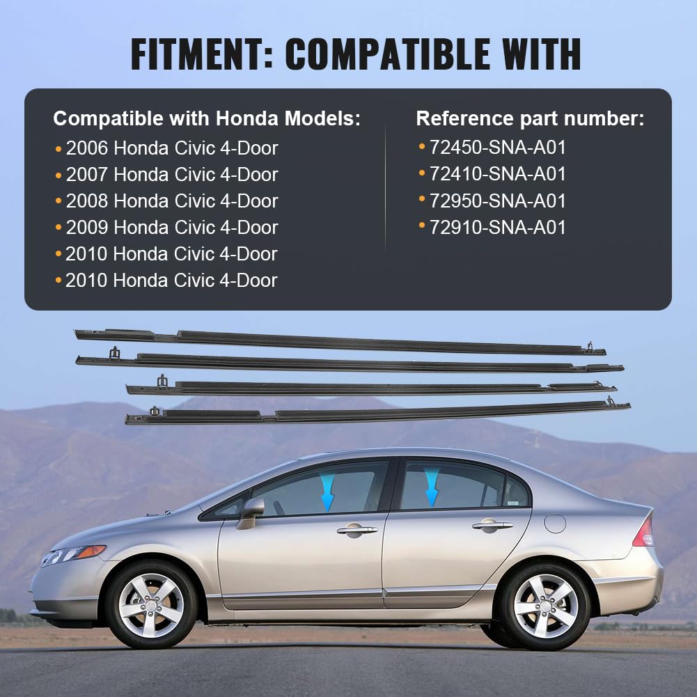 GZYF Window Weather Stripping, Window Seal Moulding Weatherstrip for Honda Civic 2006 2007 2008 2009 2010 2011, Replaces#72450-S