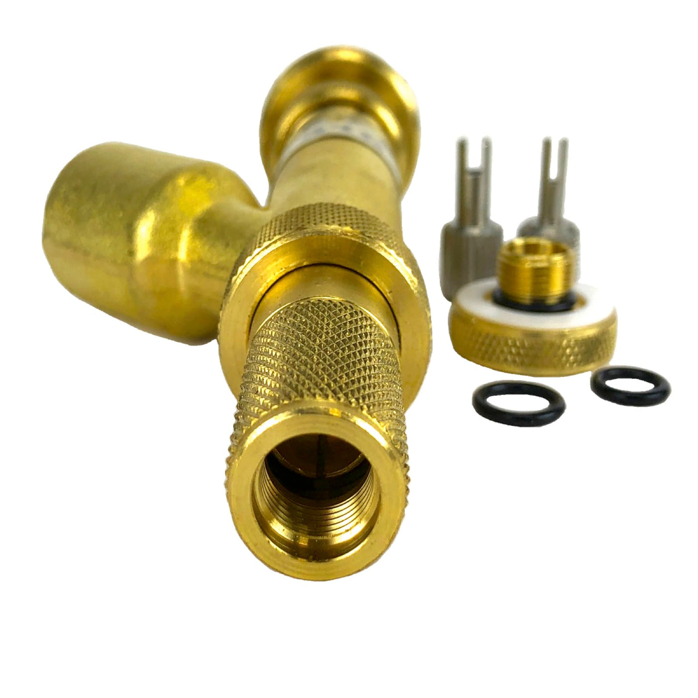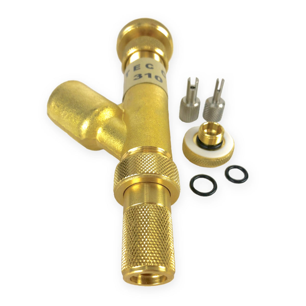 Q: What material is the HALTEC 310 made from?A: The HALTEC 310 Liquid Fill Gun is constructed from brass, which is durable and resistant to corrosion, ensuring a long-lasting tool for tire inflation and maintenance.