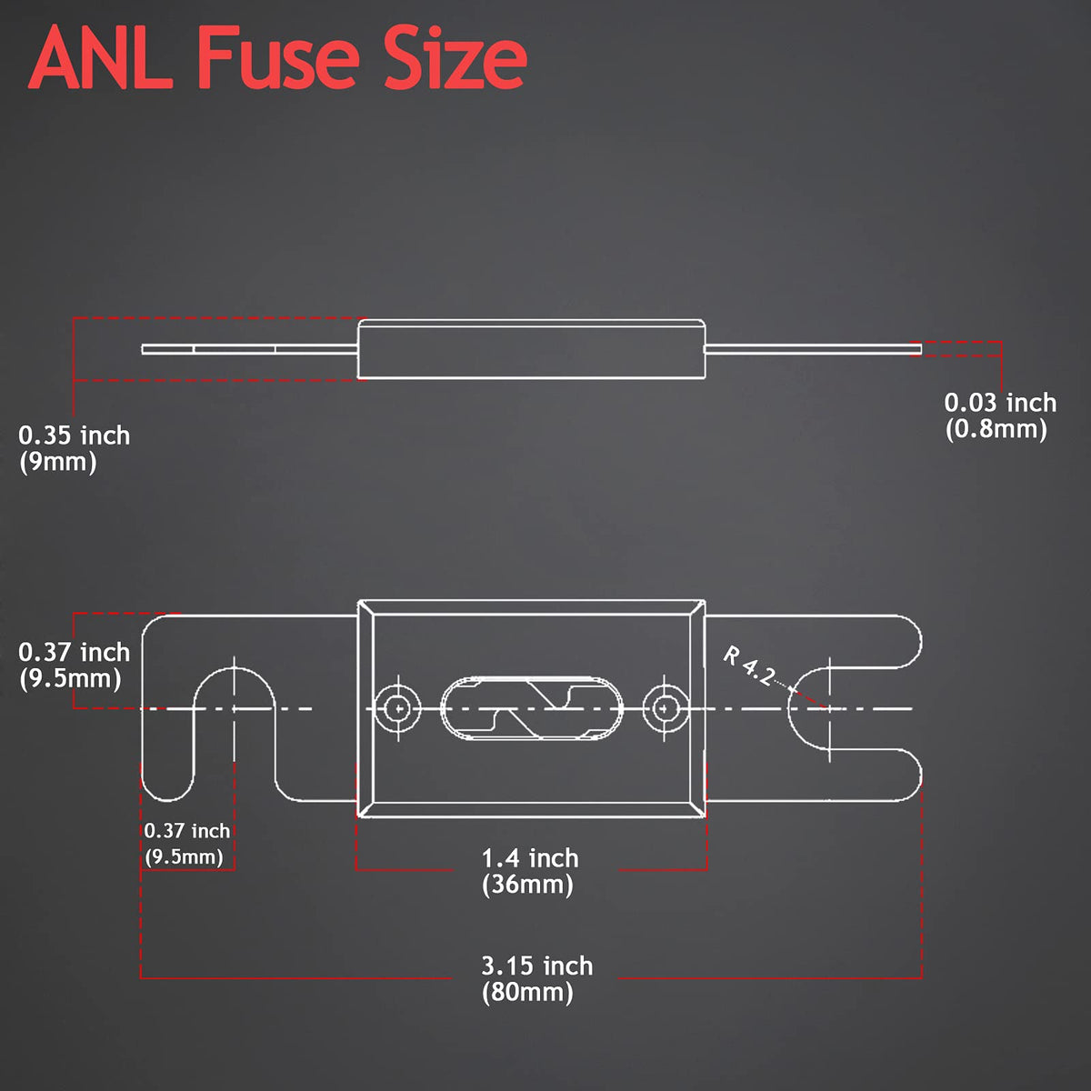 ANL Fuse Holder Kit Package Content: 3pc x ANL Fuse Holder 3pc x 100 AMP ANL Fuse 6pc x Screw ANL Fuse Block Kit Advantages: Using gold plating process, with good conductivity; Use high-quality environmentally friendly flame-retardant ABS material, safe and beautiful; Compatible with almost all automobiles and devices equipped with a DC power supply; Small size can adapt to various complicated installation environments. Application: Wide range of use, can be used in automotive setup, car audio, car sound system and various other DC applications. Hamolar ANL Fuse Holder The Hamolar ANL Fuse Holder with fuses are used in electrical systems in which the fuse is designed to burn out when the current exceeds the safe limit for the device being protected by the fuse. This fuse set is ideal for custom installation.