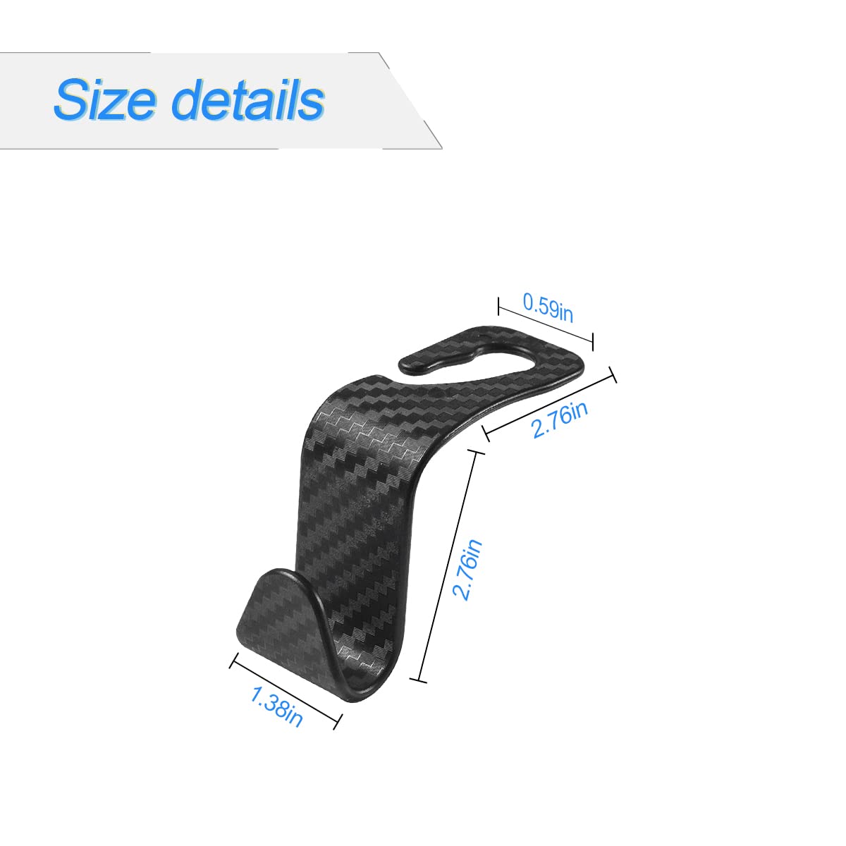 Hanemia Car Back Seat Headrest Hooks, 4 Pack Carbon Fiber Stylish Back Seat Hanger For Car Handbag Clothes Coats Grocery Bags, C