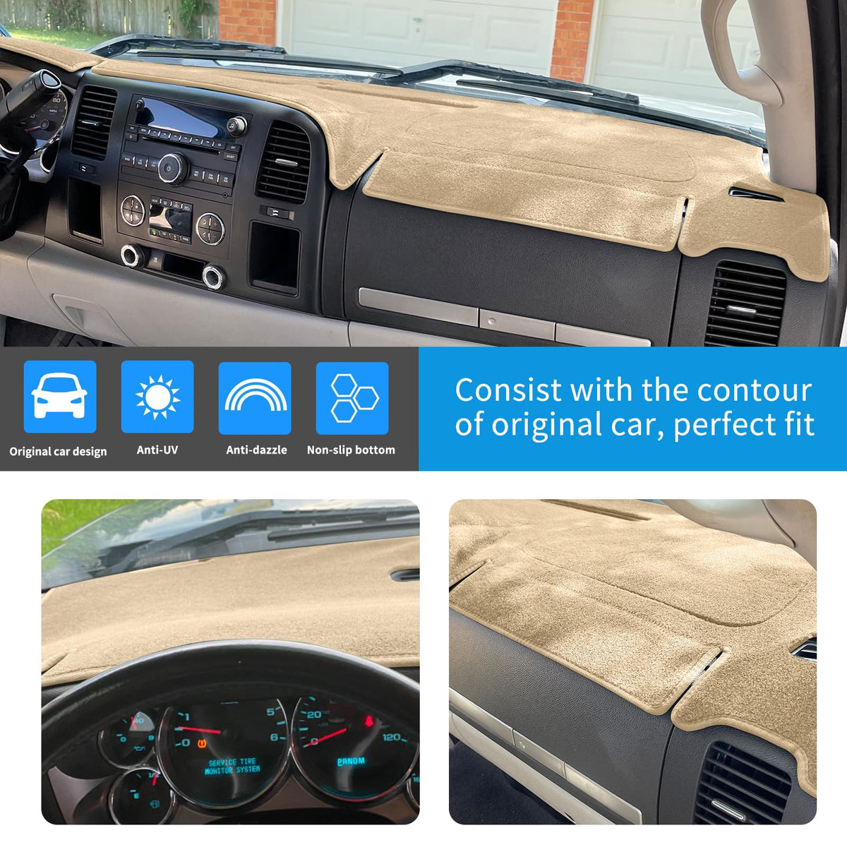 Hanlanka Dashboard Cover For Gmc Sierra And Chevrolet Silverado- Fits 2007-2013 Models With Two Glove Boxes. Custom Fit Dash Mat