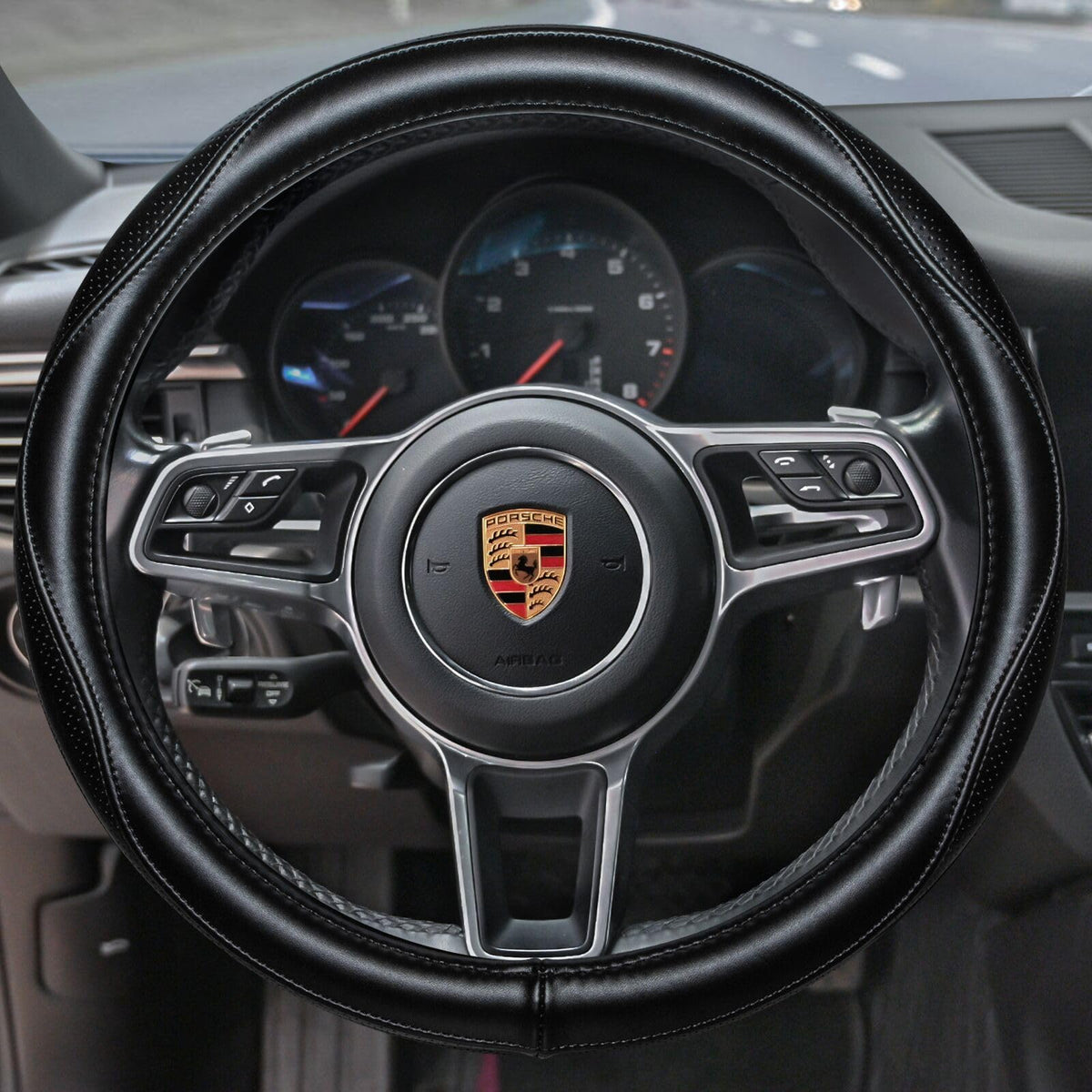 Decoration: Decorate The Interior Of Your Vehicle With Our Genuine Leather Steering Wheel Cover And Keep Your Steering Wheel Looking New And Luxurious. Installation Steps : 1. Align The Steering Wheel Cover On The Top Of Steering Wheel. 2. Pull Tight The Steering Wheel Cover From Top To Side And Side To Bottom. 3. Fix The Bottom Of Steering Wheel Cover And Adjust It. ?? Fits All Standard Steering Wheel With Diameter 14 1/2 Inch To 15 Inch (37Cm To 38.5Cm). If You Are Not Sure If Our Steering Wheel Cover Is Right For Your Car Model, Then Its Very Simple To Measure Whether Your Steering Wheel Is 14.5-15 Inches In Diameter. ????Note: In Order To Reduce Amazons Storage And Freight Costs, Making Small Plastic Packing Bags Is Particularly Needed. When You Get The Item, You May Find Its Slightly Deformed Or Crease, Please Rest Assured, The Item Can Be Restored To Its Orginal State 1 To 2 Hours Later After Installation. If You Mind, Please Choose Carefully.Best Service: We Offer A Full 18-Month Against Defects In Design, Materials, And Workmanship So You Can Buy With Confidence.