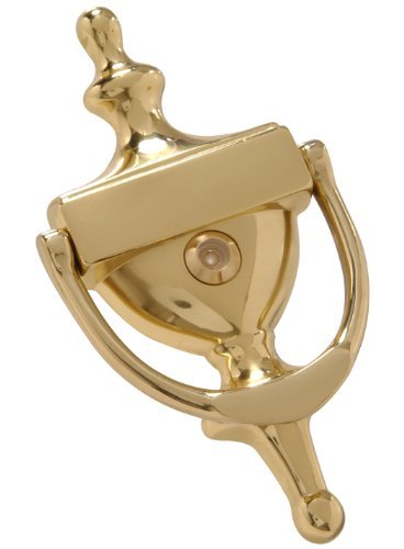 The Door Knocker with viewer is an ideal decorative accent for a front door and is a great alternative to a doorbell for announcing a visitor. The incorporated door viewer allows a 160 degree view of your entry way. They are durable and appealing to the eye, as well as functional. The door knocker is made of polished solid brass that provides excellent corrosion protection. Door Knocker can be engraved to personalize your home.