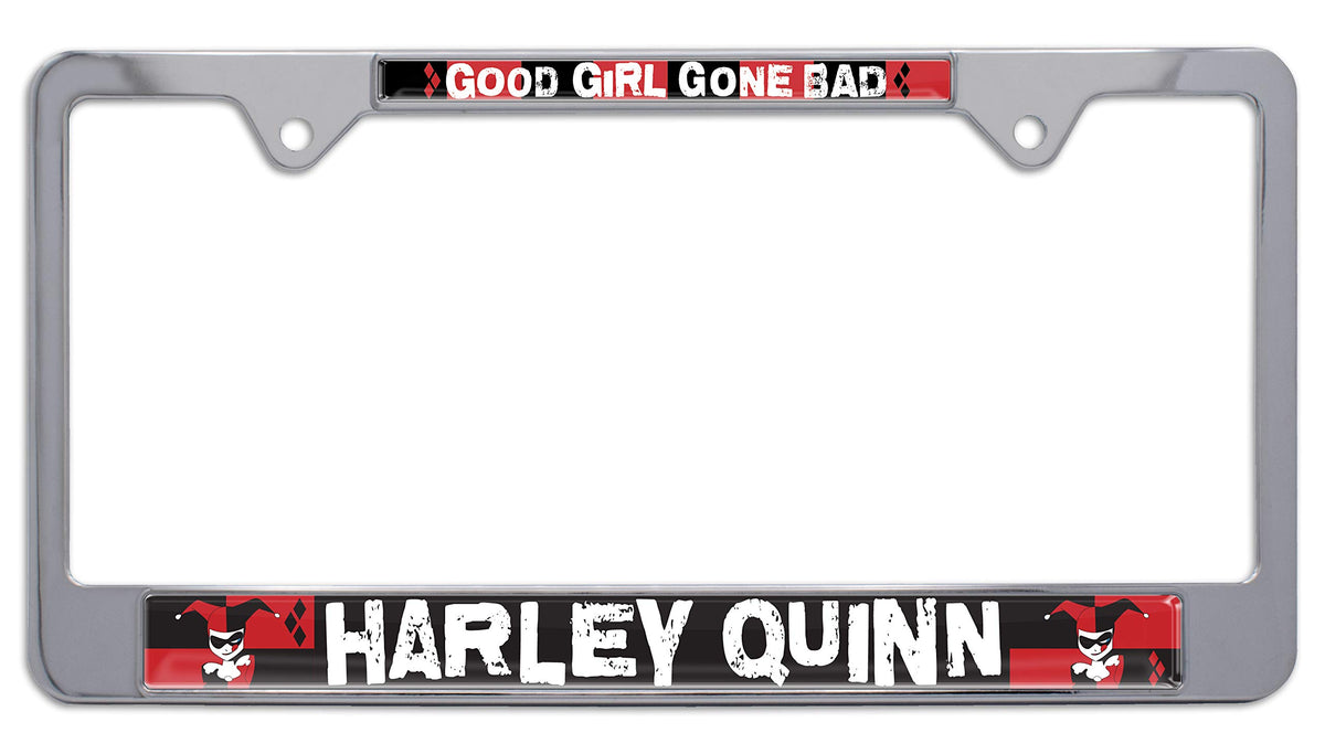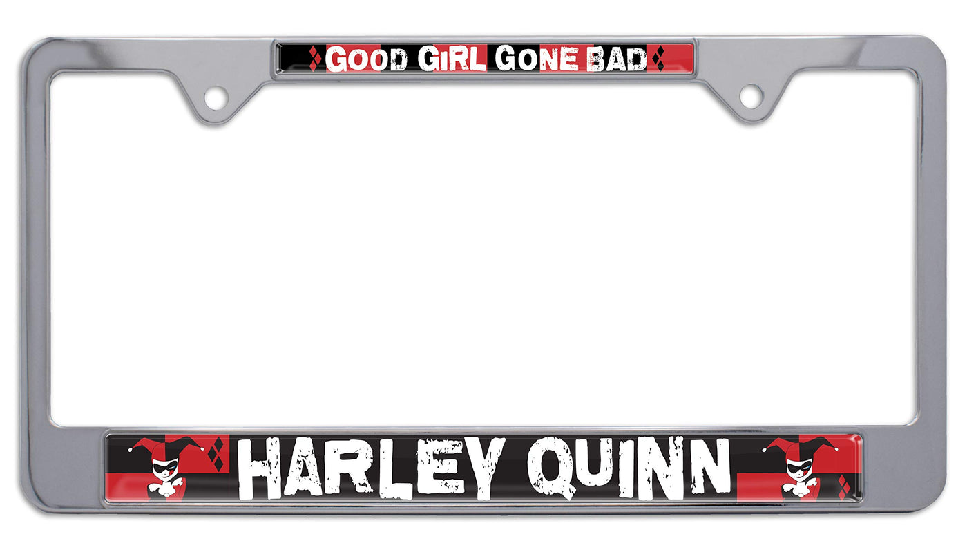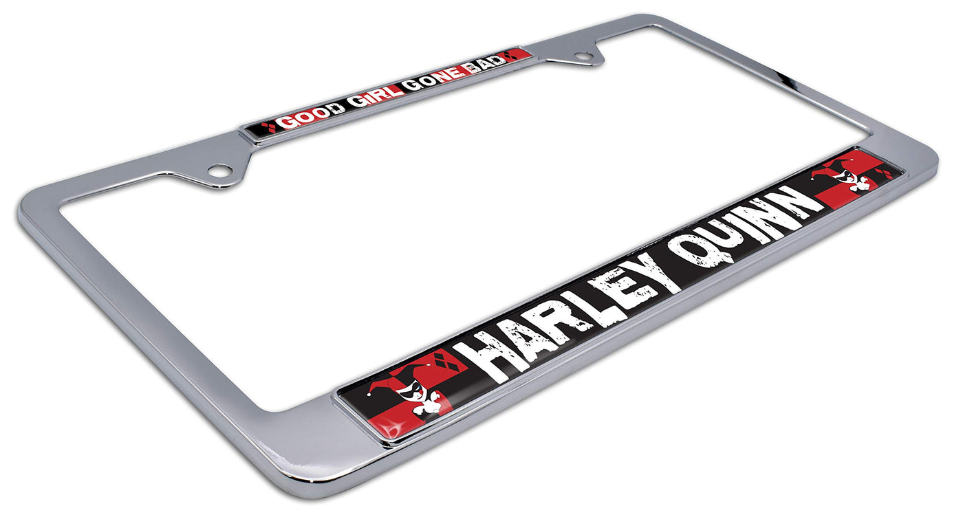 Officially Licensed - Harley Quinn Shiny Chrome License Plate Frame By Elektroplate. All-Metal (Not Plastic) Frame With A Shiny Chrome Finish, And Full Color Uv-Protected Domed Inserts. All Elektroplate License Plate Frames Are Comprised Of A Chrome-Plated Metal Finish Made To Withstand Harsh Outdoor Conditions. This Shiny Chrome Frame Will Look Brand New For Years To Come (As Opposed To Cheap Imitations That Will Fade Or Chip Within Months Of Being On Your Vehicle). Our High-End License Plate Frames Are The Perfect Way To Showcase Your Dc Comics Pride Everywhere You Drive. In Addition, All Elektroplate Products Are Packaged In Elegant Retail Packaging To Make A Great Gift!