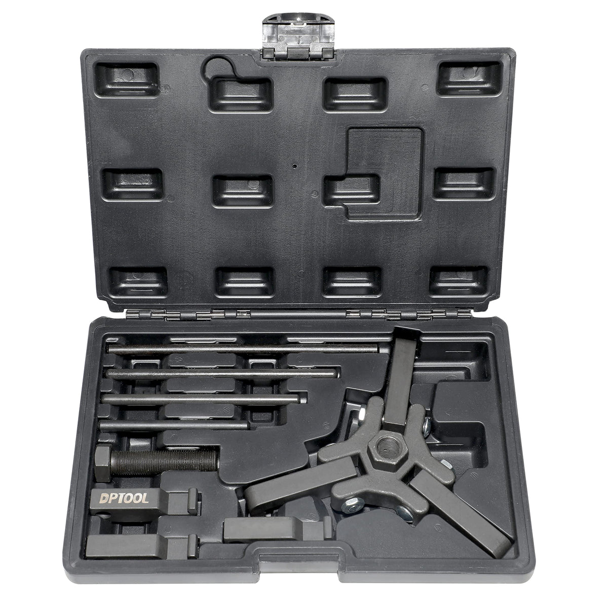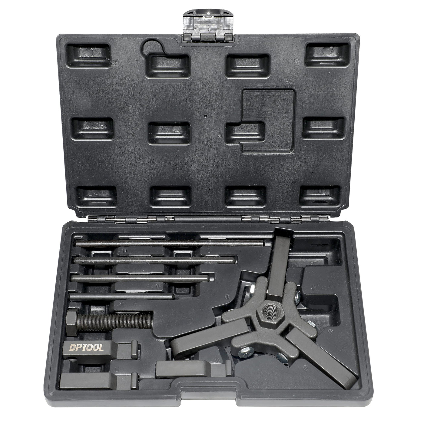 Q: How does the upgraded 3 Jaw Puller feature improve functionality?A: The upgraded 3 Jaw Puller features both thicker and thinner jaws to accommodate older and newer vehicle models. The thicker jaws are designed for older vehicles, while the thinner jaws allow access to tight spaces in newer models, ensuring a better fit and more efficient removal of damper pulleys.
