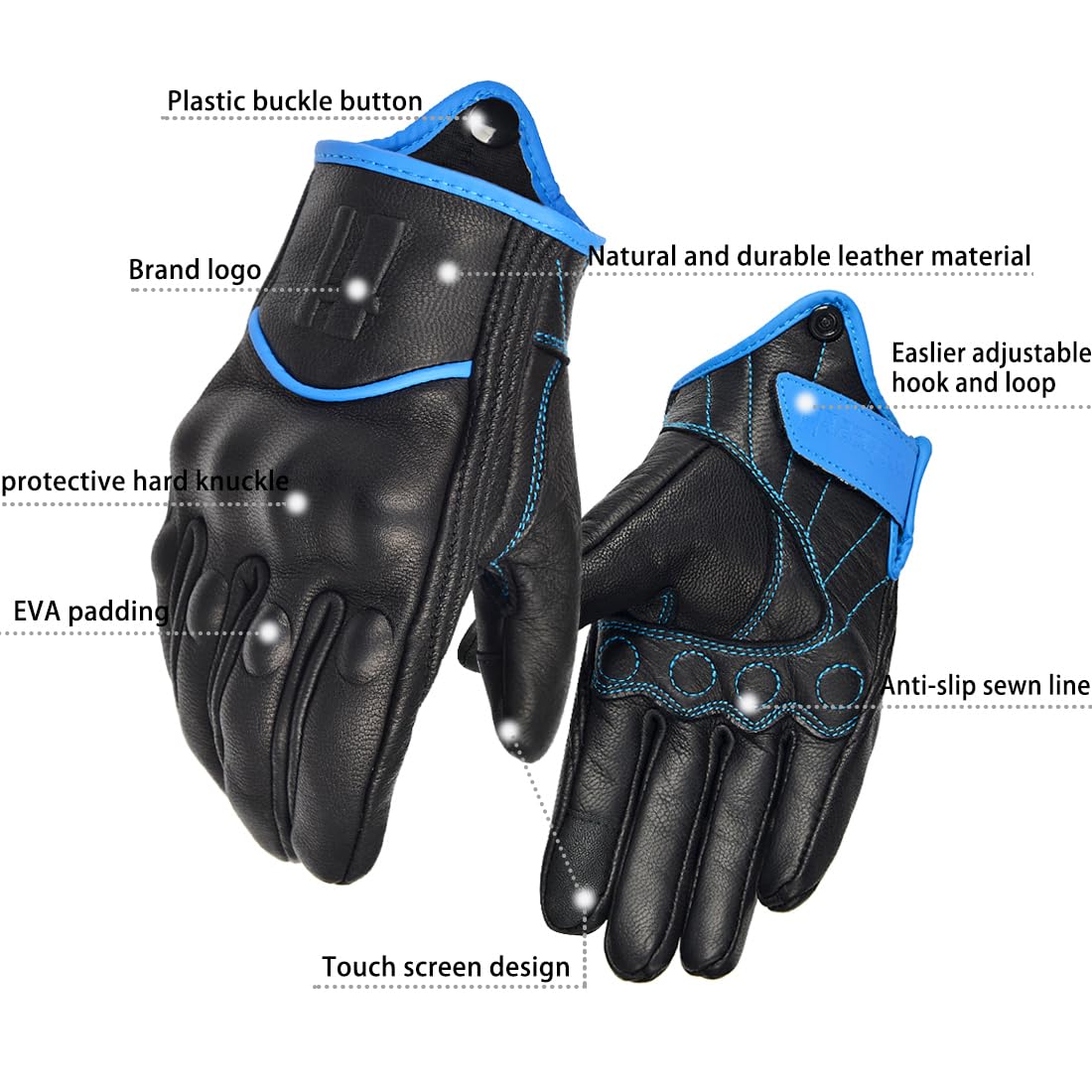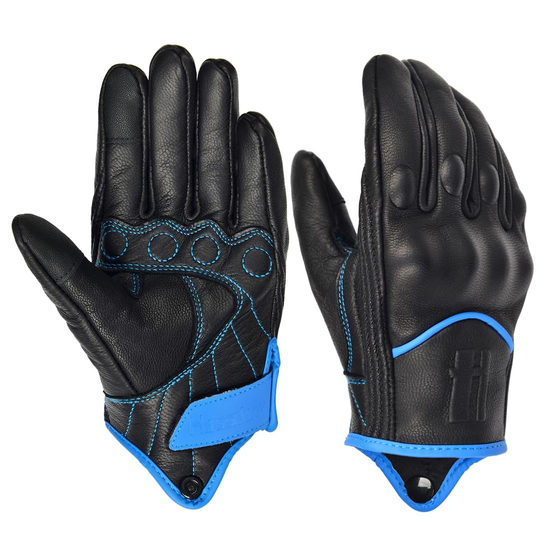 Harssidanzar Leather Motorcycle Gloves For Men Touchscreen Riding Driving Gloves Gm028, Black/Blue, Size Small
