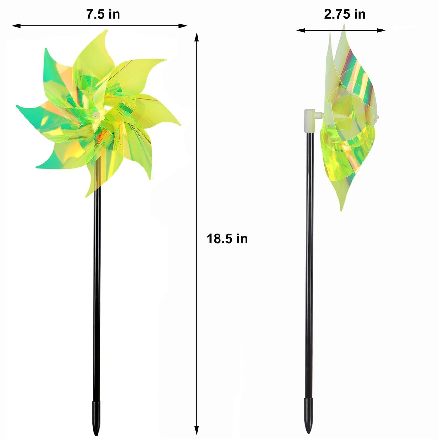 Hausse 10 Pack Reflective Pinwheels Wind Spinner, Extra Sparkly Pinwheel with Stakes, Transparent Yellow Every harvest season, you may worry about birds destroying your crops and droppings landing on balconies, swimming pools and other places. So give it a try, this bird windmill will keep birds away from your house, garden, roof, window and boat. Our visual reflective ornamental pinwheel uses wind motion and light reflections to keep birds away coming from any angle. 10 pack shiny reflective Mylar pinwheels can rotate easily in the breeze, protect your garden, farm, and lawn by creating a bright flash that scares away birds. This transparent yellow Mylar pinwheel product is made of safe, non-toxic plastic material that will not harm the environment and animals. Instead of frightening and harming birds, our bird repellent pinwheel device humanely scares them away by reflecting visual light. The bird-reflecting pinwheel is both practical and decorative. Specification: Material: Non-toxic Plastic Color: Transparent Yellow Size: 7.5 x 2.75 x 18.5 Inches Each Package include: 10 x Reflective Pinwheels Notes: 1. For the size measured manually, please allow a little error. 2. The pinwheels repellent reflective you receive are un-assembled, please assemble them when received.