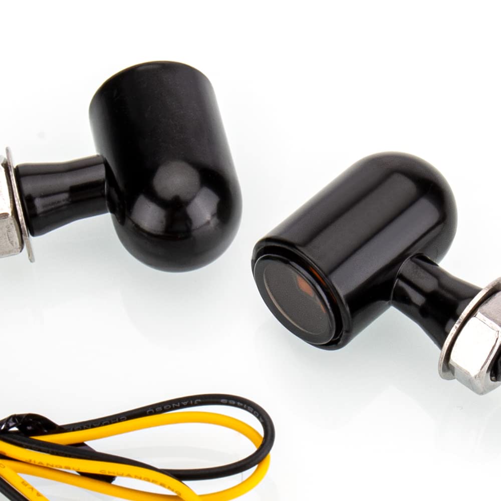 Q: Do these blinkers enhance the aesthetic of my motorcycle?A: Yes, the stylish design of these mini bullet turn signals adds a sleek look to your motorcycle, while providing high-power amber lights for signaling.