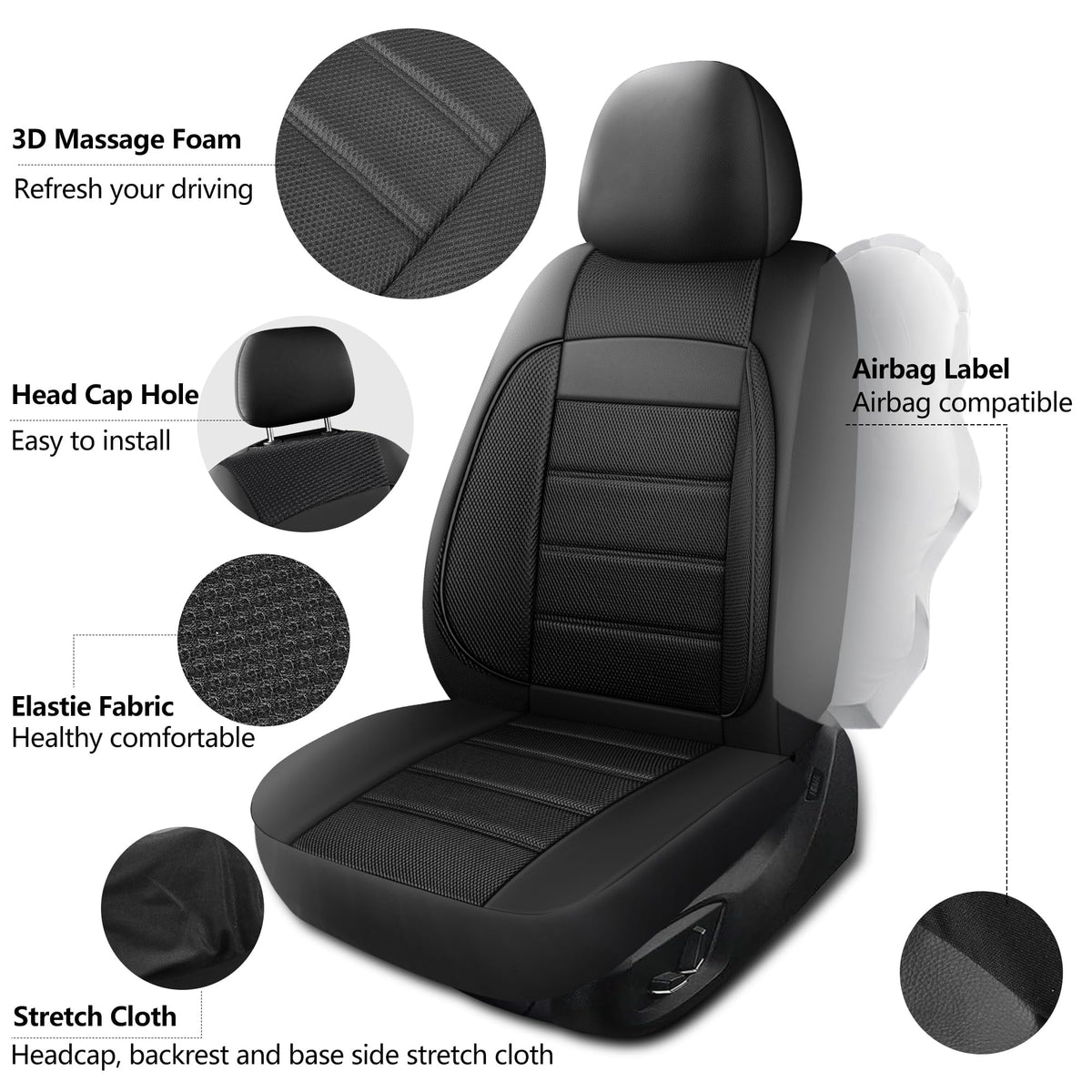 HChengkikz Car Seat Covers Full Set, Seat Covers for Cars,Leather 3D Foam Back Support Car Seat Cover, Air Mesh Automotive Seat