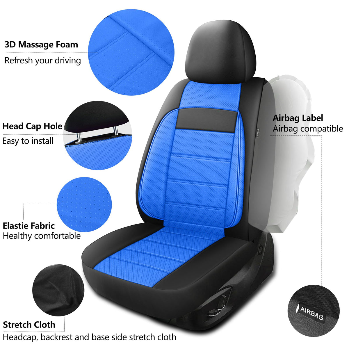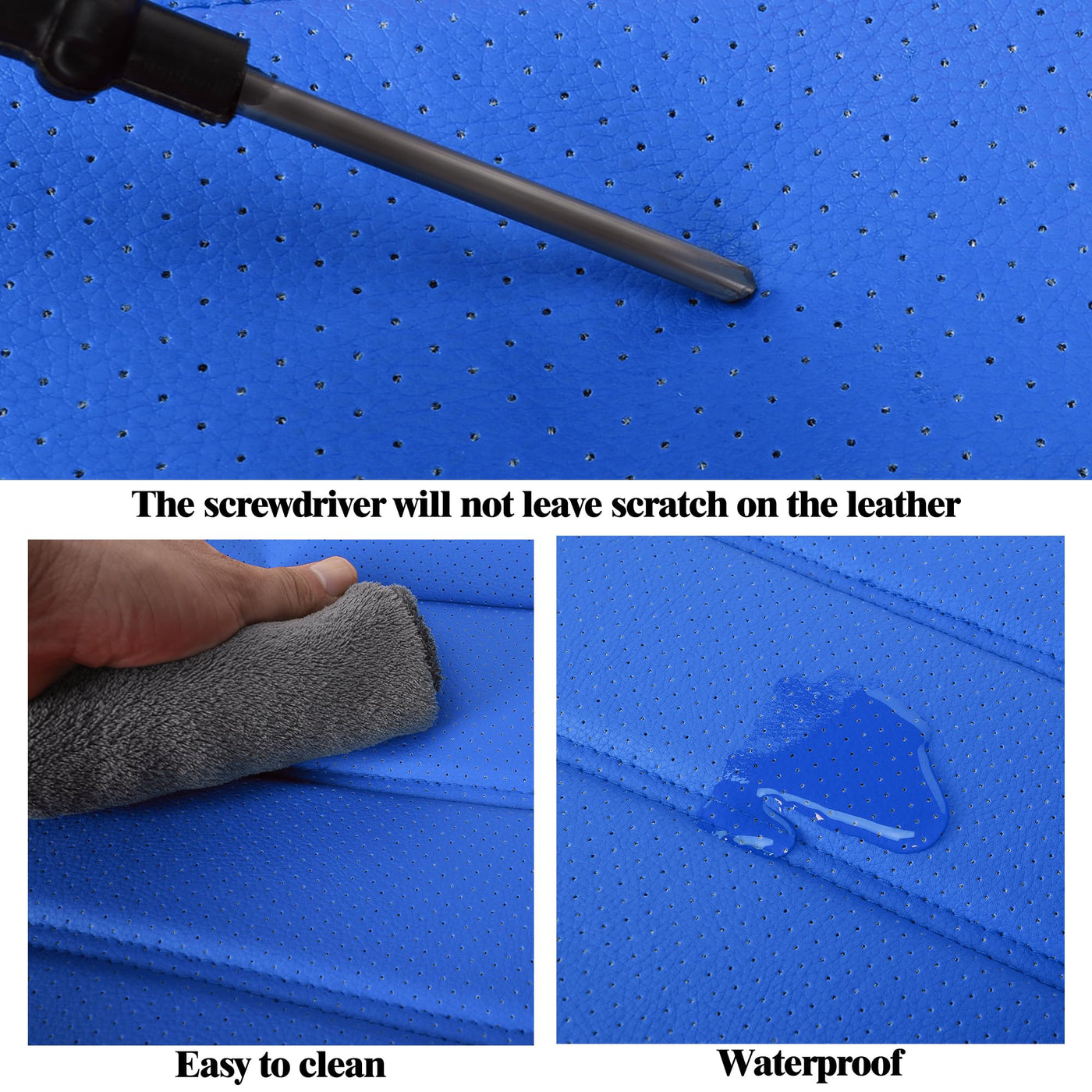 ?Premium Leather?Our car seat covers are designed by high-quality leather and 3D foam back support. The leather is stretchy and feature a perforated design that improves breathability, enhances comfort while giving the covers a luxurious texture that enhances the overall look of the car interior. ?Universal Fit?Our semi-customized car seat cover fits most vehicles better than other universal covers in the market. Designed to fit a wide range of vehicles, from sedans and trucks to SUV and commercial vehicles. Unique design creates a nearly custom look. ?Simple Sport Design?HChengkikz car seat covers embody a streamlined design made of sporty lines that are simple yet captivating, transforming your car's interior into a sleek and energetic environment.The minimalist lines also make your car look more elegant and classy. ?Great Support By The Foam? Provide the great support for you. Release the fatigue of driving and long journey. Enhance the driving comfort. Release the fatigue of driving and long journey.In addition, purchase with confidence knowing you're backed by our 30-day money-back guarantee. ?Full Coverage?These car seat covers fully protect the front of your vehicles seats from every single angle so you dont need to worry about your kids kicking and damaging the back of your seat.Split rear seat cover, The highlighted feature is the zipper unlocking mechanism for the center armrest, allowing convenient access and maintaining a seamless look. ?Airbag Compatibility?Safety is our priority with these seat covers. Car seat covers are engineered to be fully compatible with airbags, ensuring maximum protection for you and your passengers. They also allow unhindered use of seat belt buckles.