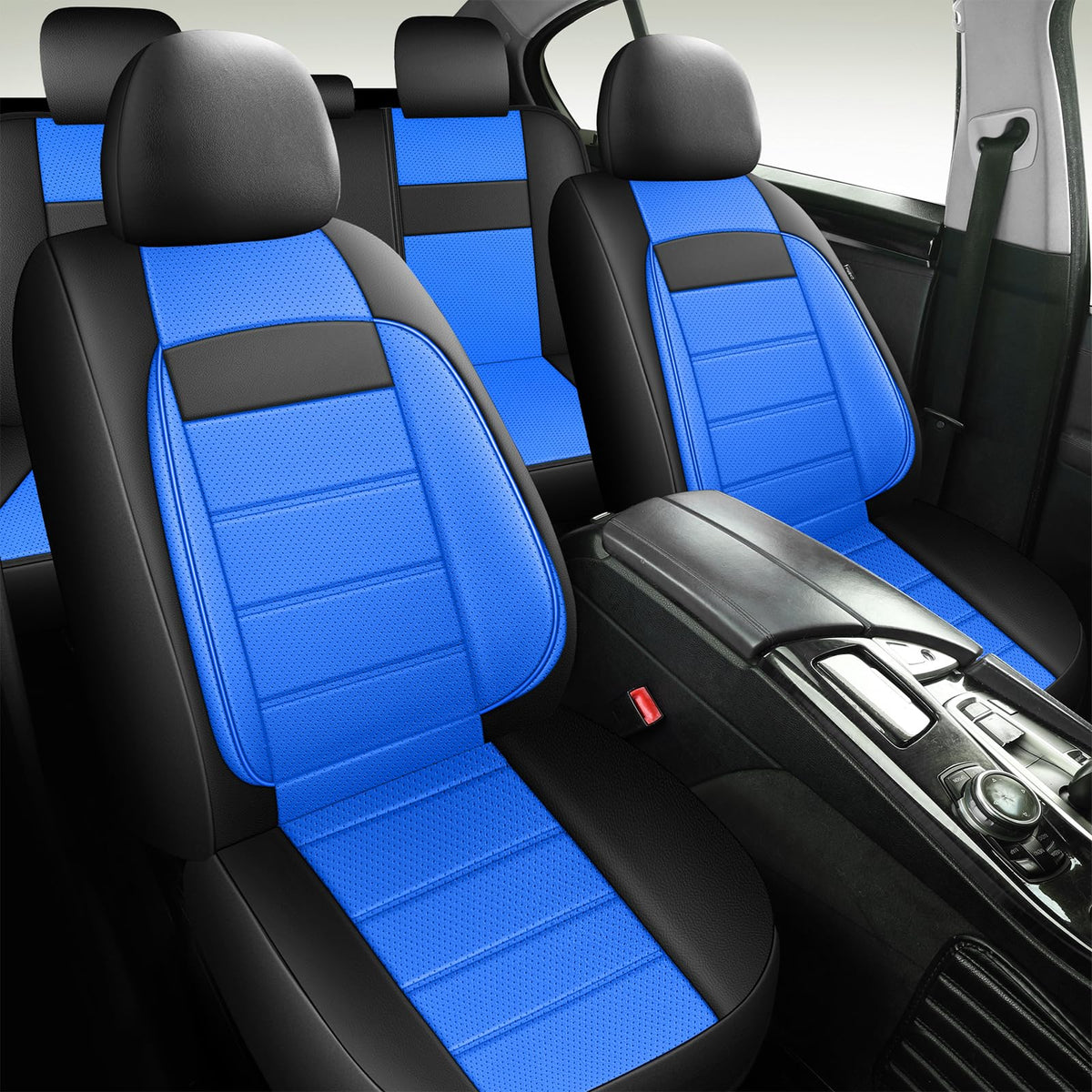 HChengkikz Leather Seat Covers Full Set Universal Water Resistant 3D Foam Back Support, Luxury Comfort Automotive 5 Seat Covers