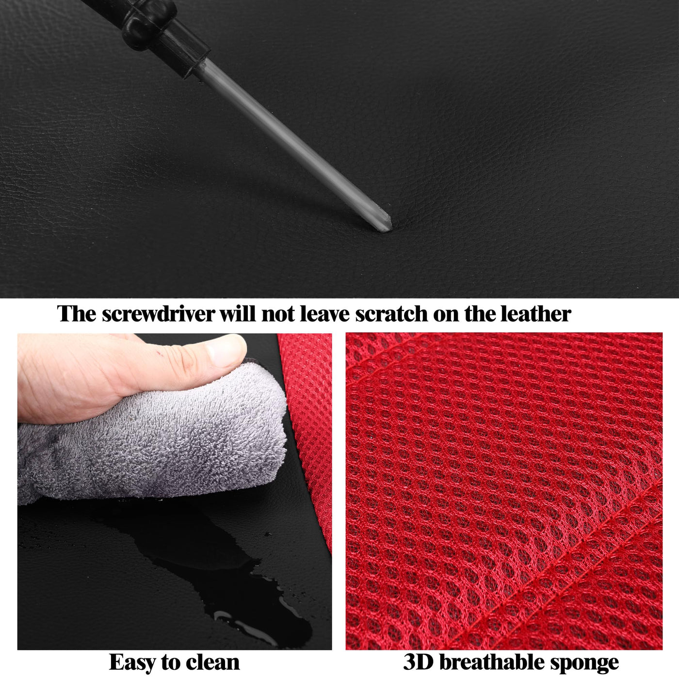 ?Breathable Design?Our car seat covers are designed by high-quality leather and 3D foam back support. The leather is stretchy and back feature a perforated design that improves breathability, enhances comfort while giving the covers a luxurious texture that enhances the overall look of the car interior. ?Universal Fit?Our universal car seat covers are designed to fit a wide range of vehicles, from sedans and trucks to SUV and commercial vehicles. Crafted from high-quality materials, these covers offer durability and style. ?Airbag Compatibility?Safety is our priority with these seat covers. Car seat covers are engineered to be fully compatible with airbags, ensuring maximum protection for you and your passengers. They also allow unhindered use of seat belt buckles. ?Easy Installation?HChengkikz automotive seat covers are easy to install. Whether you're a seasoned car enthusiast or a first-time DIYer, our step-by-step installation guide make it easy to install with confidence.If you have any questions or concerns, our dedicated customer service team is always available to assist you. ?Full Coverage?These car seat covers fully protect the front of your vehicles seats from every single angle so you dont need to worry about your kids kicking and damaging the back of your seat.Split rear seat cover, The highlighted feature is the zipper unlocking mechanism for the center armrest, allowing convenient access and maintaining a seamless look. ?Reliable Service?Purchase with confidence knowing you're backed by our 30-day money-back guarantee. We stand by our commitment to quality. Should you encounter any issues such as packaging problems, missing hardware, or quality concerns, our dedicated customer service team is ready to assist you promptly.