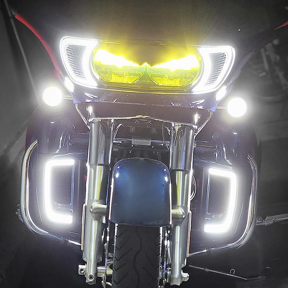 Q: What is included in the package when I purchase these lights?A: The package includes one set of HDBUBALUS headlight vent accent lights along with all necessary connectors for installation, ensuring you have everything needed to enhance your motorcycle's lighting.