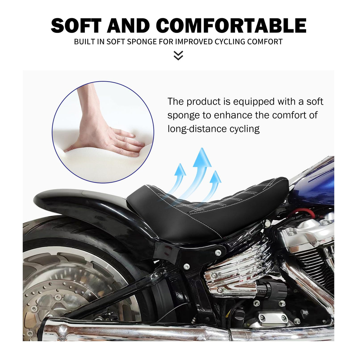 Hdbubalus Motorcycle Solo Seat Cushion Diamond Leather Seat Compatible With Harley Breakout Fatboy 2018-2023 (White Thread)