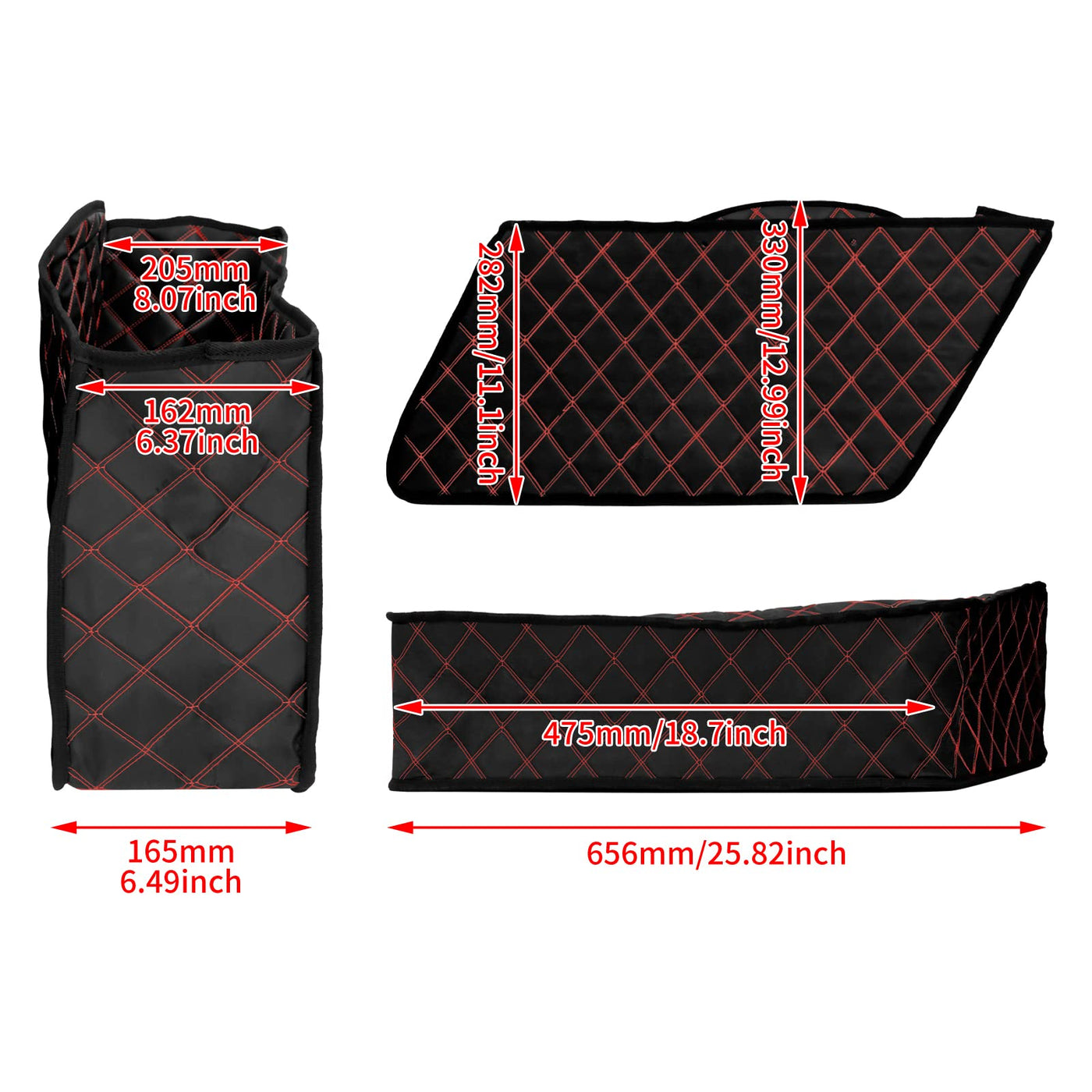 Description:?Keeps Everything Organized And Not Bouncing Around Bags?Providing Extra Protection To Your Saddlebags Bottoms And Personal Stuff. There Are Some Holes To Let Them Fix In The Saddlebag?Good Saddlebags Assistance, Ideal Gift For The Rider, Excellent Gift Choice Of Christmas, Thanksgiving, Birthday, And So On.Feature:Color: Black(Red Lined)Material: Waterproof Soft PuSize: As Picture ShownPackage Include: 1 Pair Saddlebag Liners (Include Left And Right)Instruction Is Not Included.Please Check The Size Of Your Saddlebag Before You Buy! The Install Instruction Is Not Included.?Fitment:Fit For 1993-2013 Harley Factory Saddlebag BottomsFor Harley Touring Models Including Road Glide, Road King, Ultra, Street Glide, Electra Glide 1993-2013