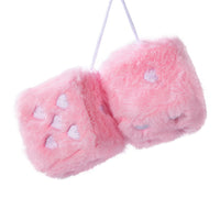 Heart Embroidered Baby Pink Fuzzy Plush Dice - 3-Inch Decorative Car Mirror Hanging Ornaments, Soft Foam, Easy Install, Great Gi
