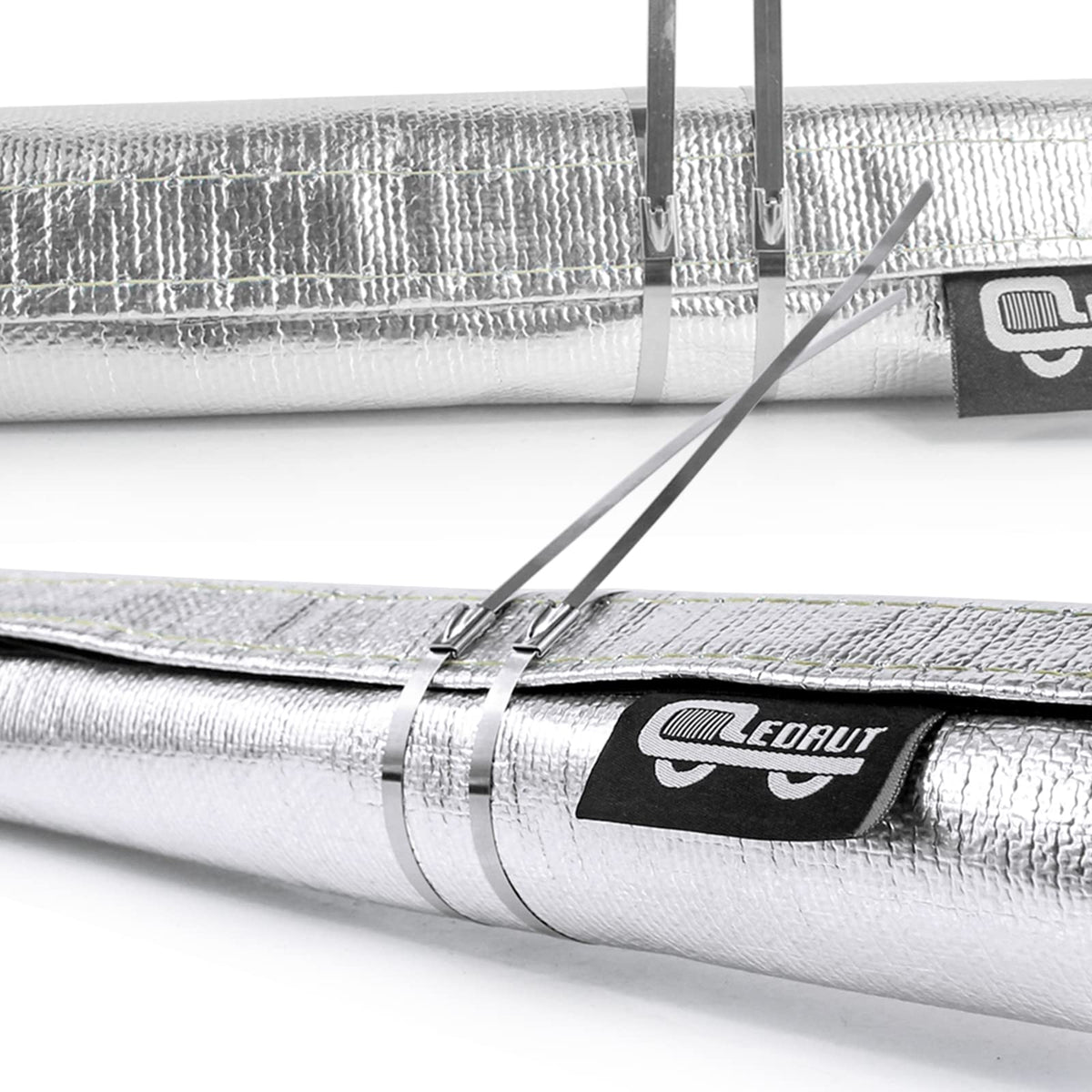 Heat Shroud Sleeve Aluminized 2 Pcs For Ultimate Heat Protection Hose Wire Shield 1-1/4''I.D. X 10Ft, With 20 Pcs 7.8Inch Stainl