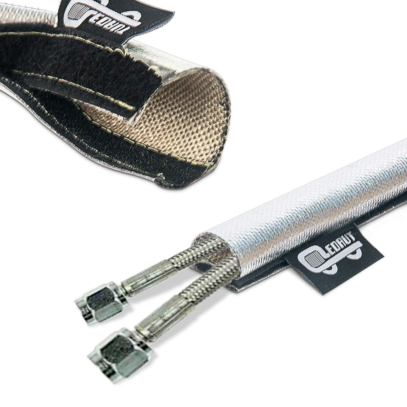 Heat Shroud Sleeve Aluminized Sleeving Express Aluminized Hose and Silver Hose Wire Protection Barrier with Hook and Loop Closur