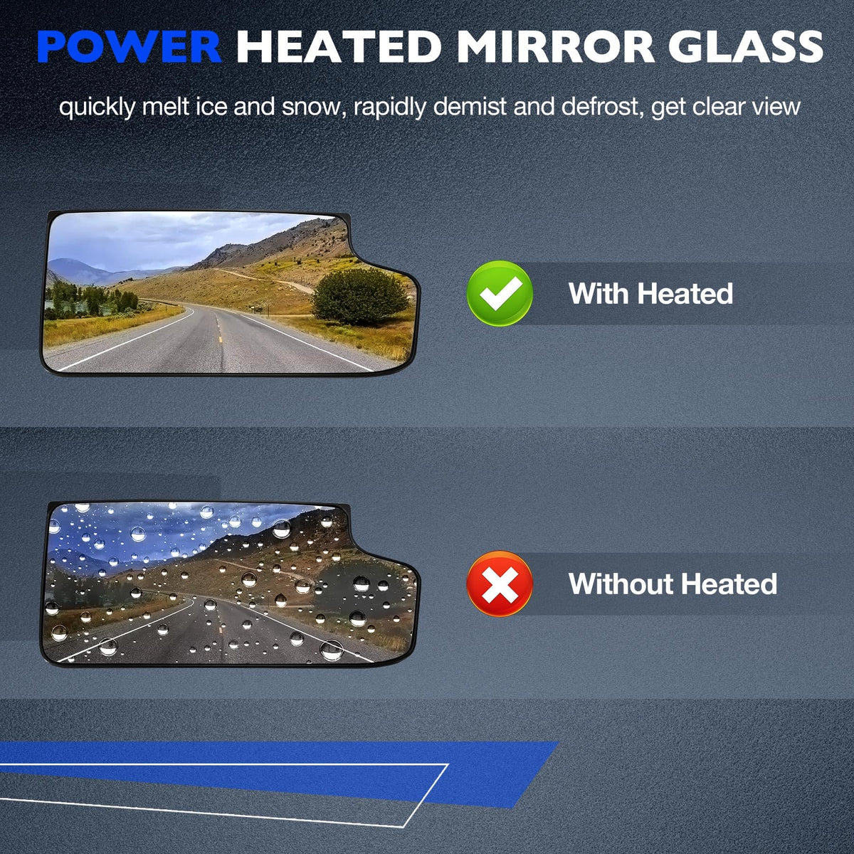 Product Name: Heated Lower Convex Exterior Mirror Compatible with: 2014-2017 Chevy Silverado 1500 Right Passenger Side Heated Lower Convex Mirror 2015-2017 Chevy Silverado 2500 HD Right Passenger Side Heated Lower Convex Mirror 2015-2017 Chevy Silverado 3500 HD Right Passenger Side Heated Lower Convex Mirror 2014-2017 GMC Sierra 1500 Right Passenger Side Heated Lower Convex Mirror 2015-2017 GMC Sierra 2500 HD Right Passenger Side Heated Lower Convex Mirror 2015-2017 GMC Sierra 3500 HD Right Passenger Side Heated Lower Convex Mirror Replace OEM: 23444113, TR00561 (Right Passenger Side) Pefermance and Features: Waterproof Clear Vision Wide View Power Adjustment Heated Rapid Demist and Defrost Quickly Melt Ice And Snow Stable and Shock-proof
