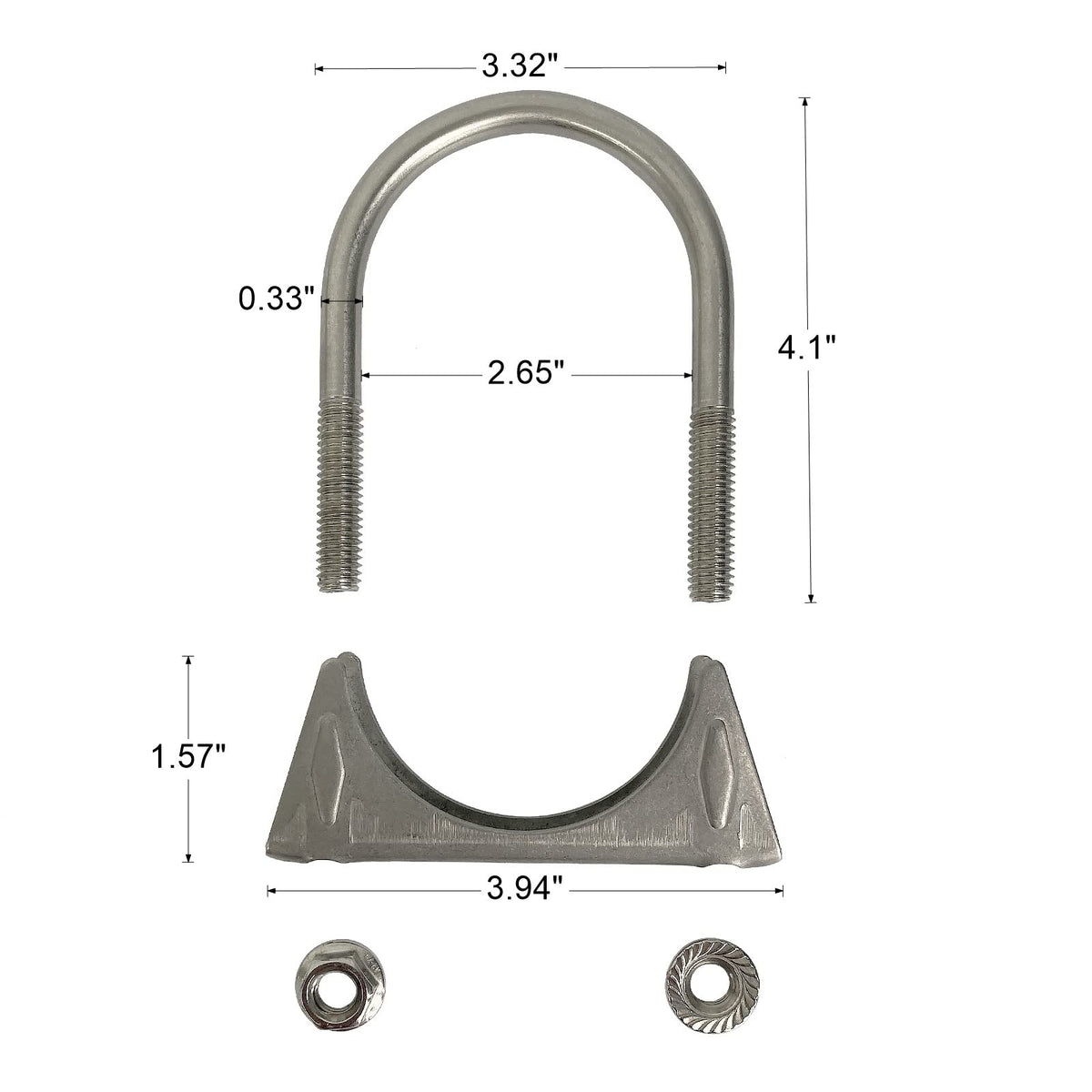 100% Brand New&Nbsp;U-Bolt | Saddle Exhaust Muffler Heavy Duty U Bolt Clamp Band Great For 2.5'' Od Pipe. Such As Exhaust Pipe, Muffler Tips Etc Material: Made Of T201 Stainless Steel Fitment:&Nbsp;Universal Fitment Clamp Type:&Nbsp;U-Bolt Clamp Size:2.5'' Product Dimensions: 4X0.6 X 3.9Inches (3.36'' Rod O.D.,&Nbsp;2.75'' Rod I.D.,&Nbsp;0.33'' Rod Thickness) Color: Silver Directly Bolt-On With No Modification Require Profession Installation Highly Recommended Available In A Wide Range Of Styles And Sizes Helps To Ensure A Leak Free Connection No Instruction Included.
