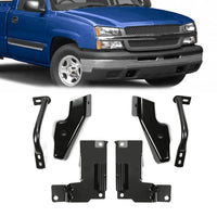 Front bumper bracket set compatible with 2003 - 2006 Chevy Silverado (07 Classic) without SS Model; Compatible with 2002 - 2006 Chevy Avalanche (W/O Body Cladding Type). Replacement for 15059687, GM1066175; 15059688, GM1067175; 15184116, GM1066159; 15184117, GM1067159; GM1061101. This front bumper bracket set is a cost-effective choice to replace the broken, rusty, scratched parts, strengthen the frame and satisfy your restoration needs. Item type: Front Bumper Bracket Set; Color: Black; Material: Steel; Surface finish: Powder Coated; Location: Front. Bolt on to install. Mounting hardware and instruction are not included.